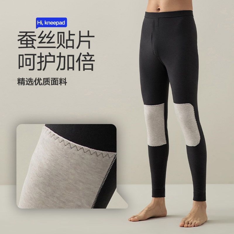 HLA/海澜之家男士秋冬保暖裤蚕丝护膝贴片高弹运动无痕秋裤打底裤