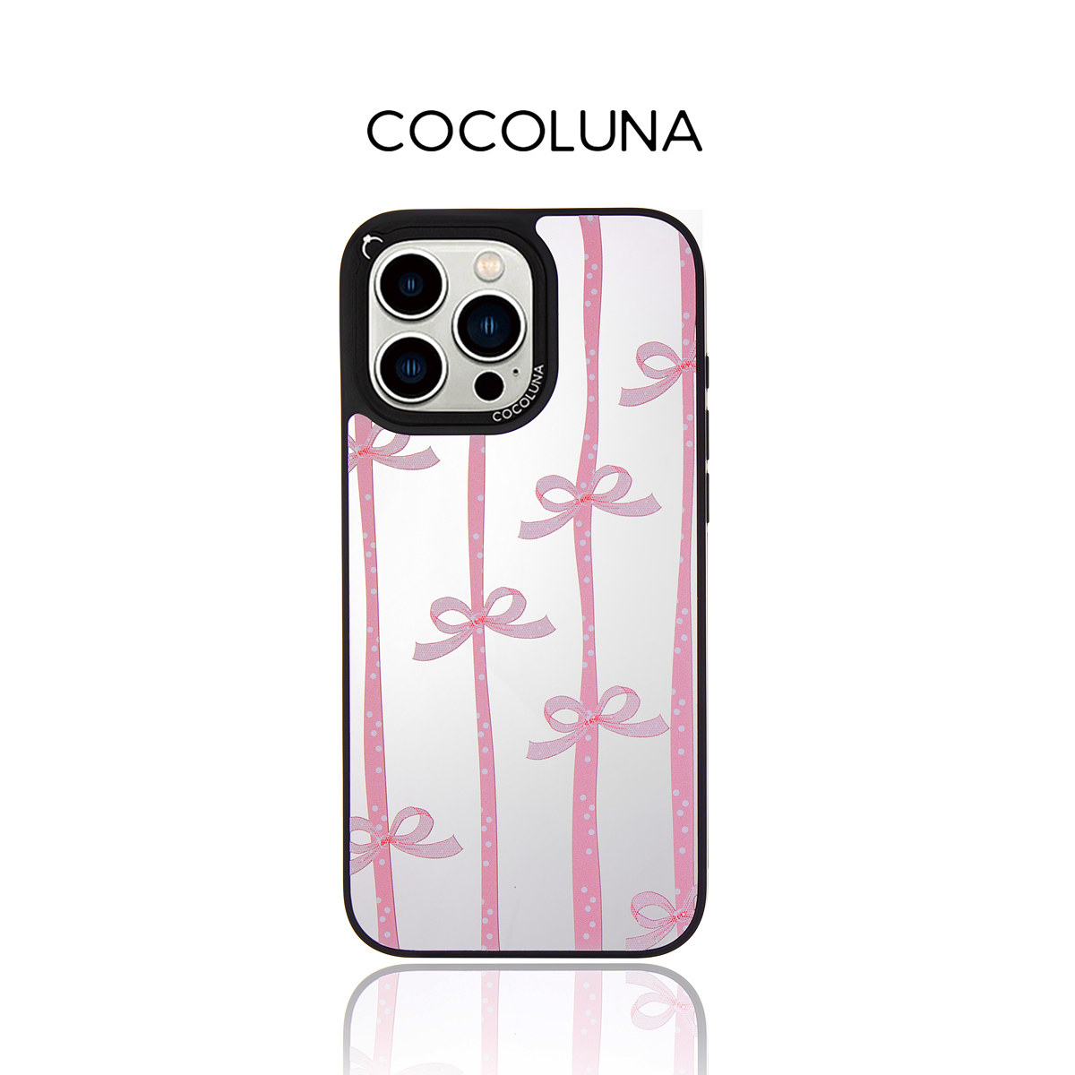 COCOLUNA 原创蕾丝蝴蝶结磁吸适用于苹果15Pro/16Pro/16ProMax 镜面手机壳甜美少女心14pro粉色全包保护套13