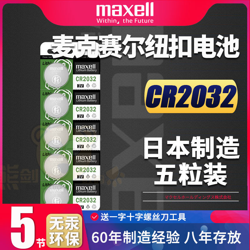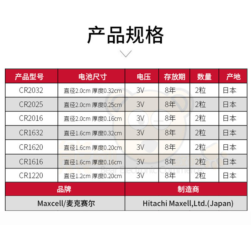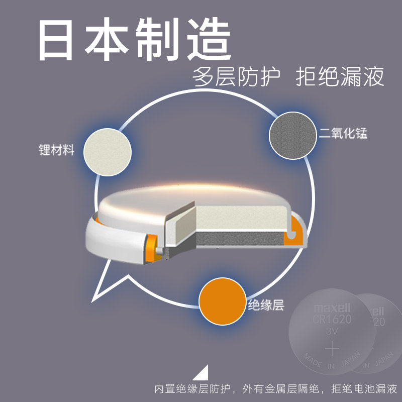 麦克赛尔CR2032/CR2025/CR2016/CR1632纽扣电池原装CR1620 CR1616 3V适用奥迪大众汽车钥匙遥控器锂电子1220
