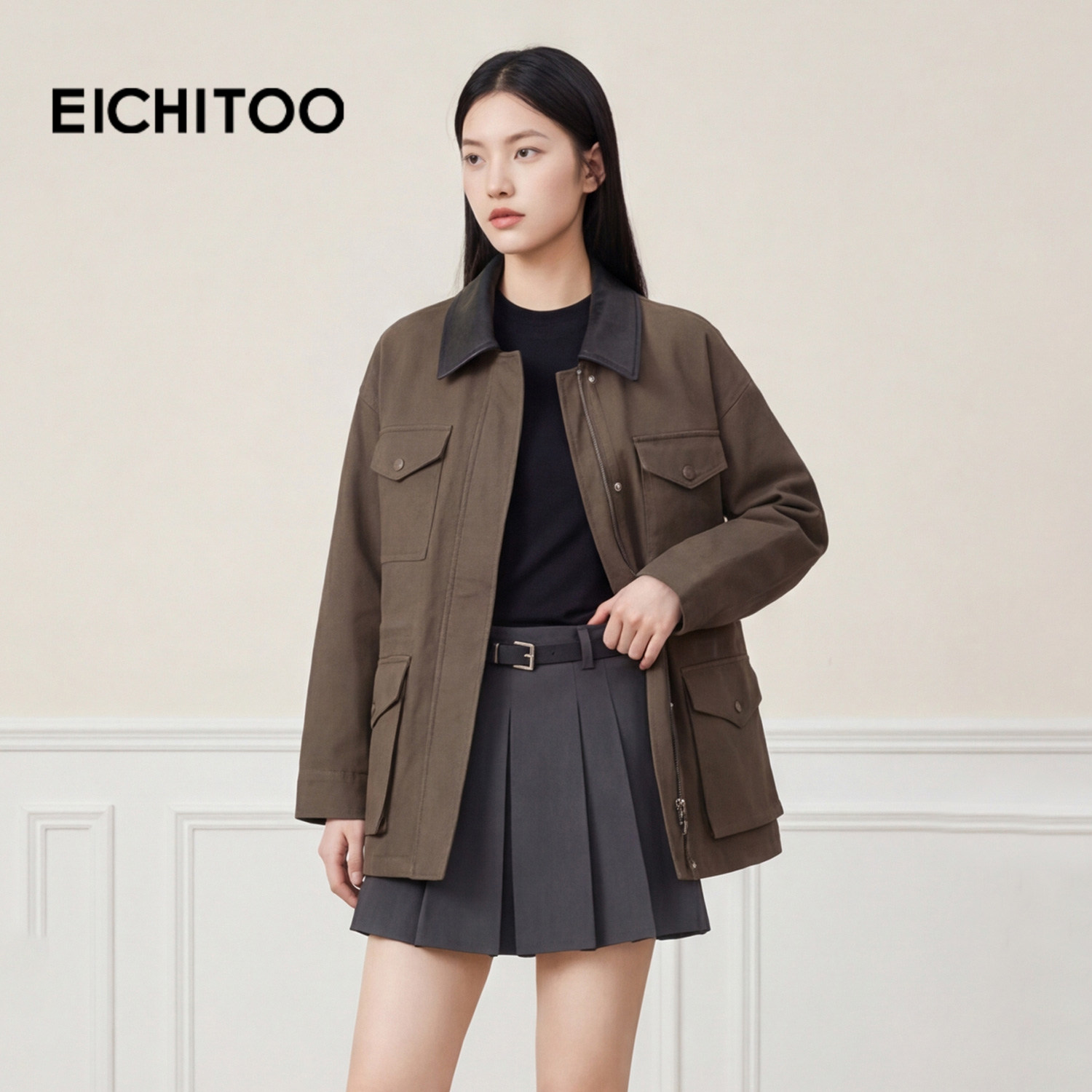【无氟防水】Eland衣恋经典时尚风衣女宽松休闲外套2025冬季新款