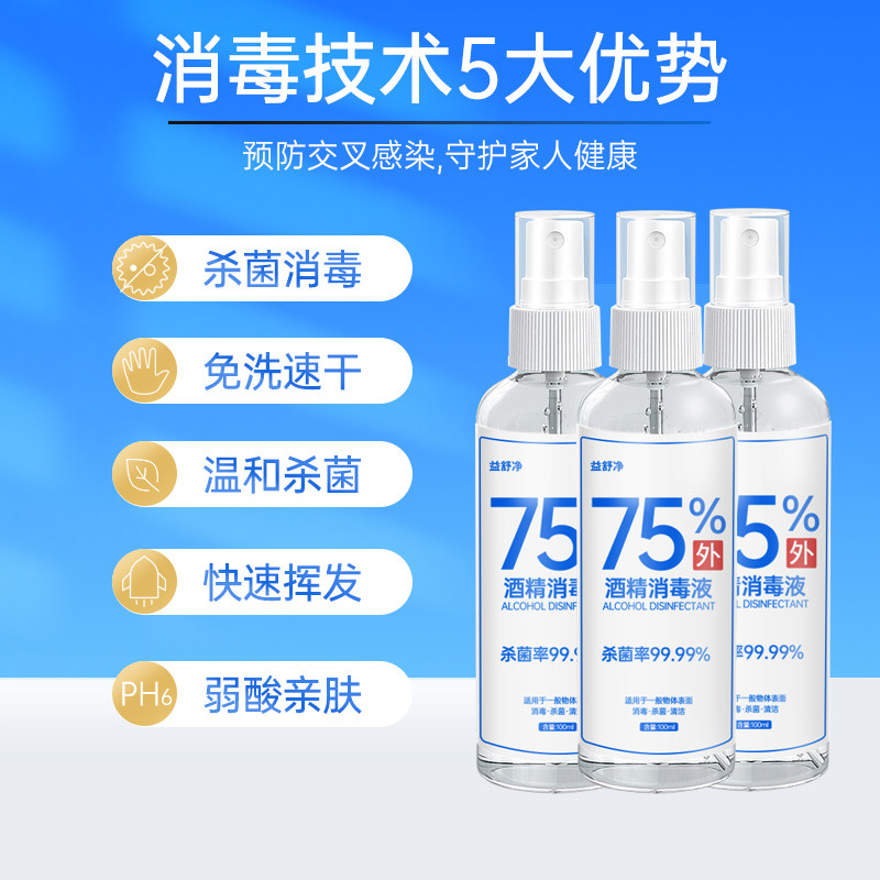 消毒液75%酒精杀菌消毒家用衣物消毒喷雾免洗酒精消毒水100ml正品