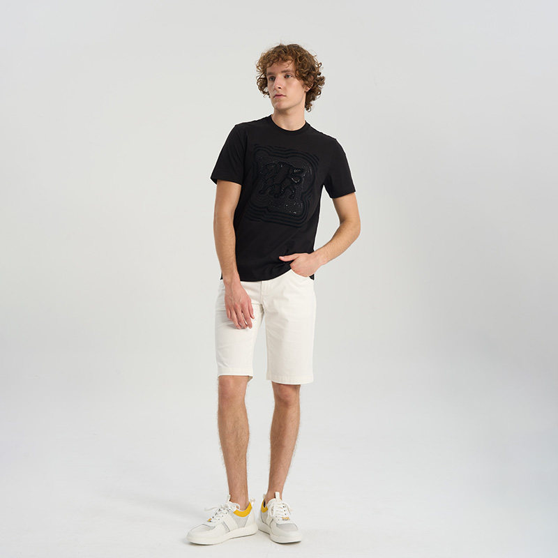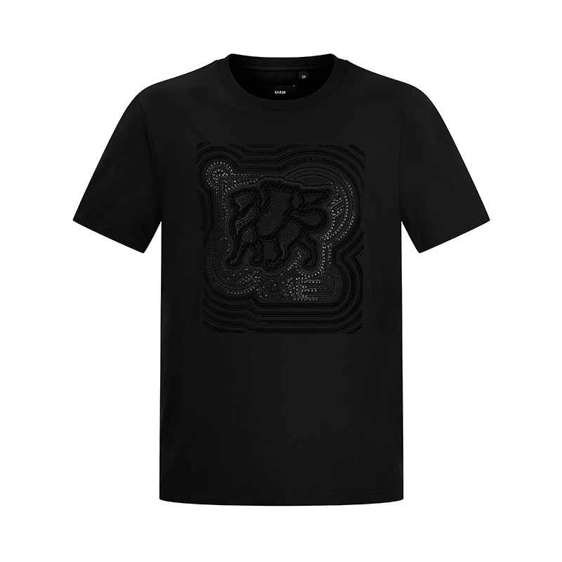RARE威雅男装夏季新款 飞狮顺色印花植绒烫钻黑色圆领短袖T恤