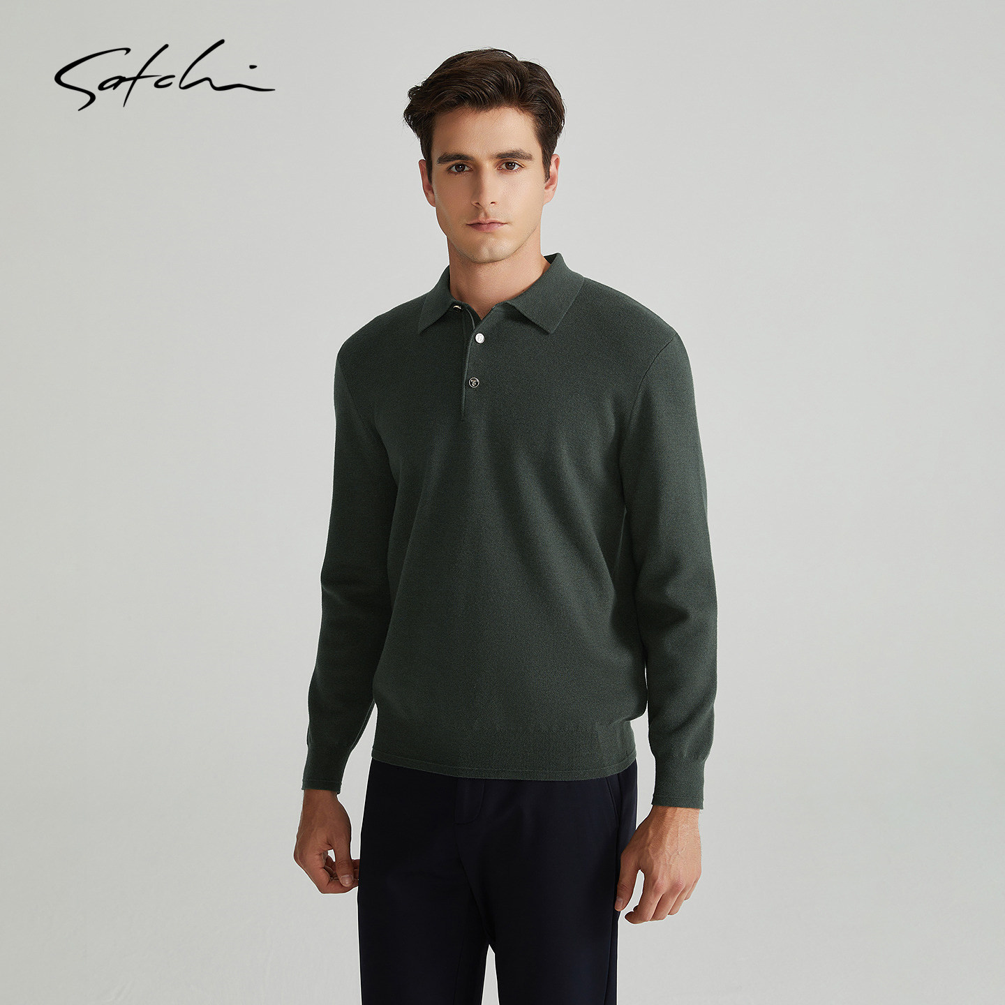 [抗菌羊毛]SATCHI沙驰男装男士针织长袖POLO衫秋季新款保暖毛衣厚