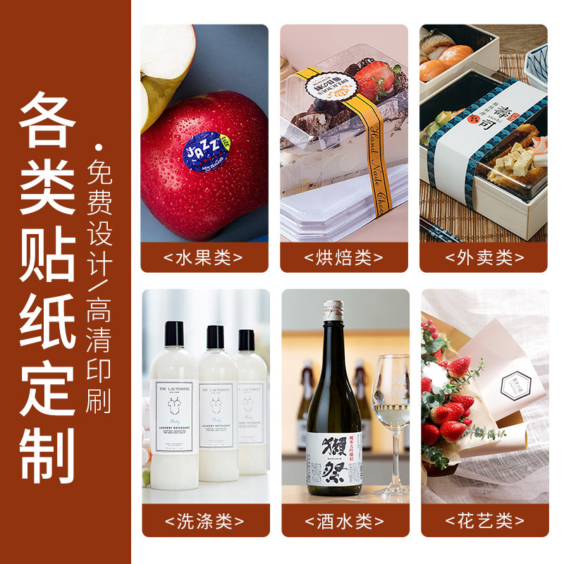 外卖不干胶贴纸定制广告logo设计奶茶花店防水透明pvc打印烘焙水果标订制食安封签二维码标签定做商标封口贴