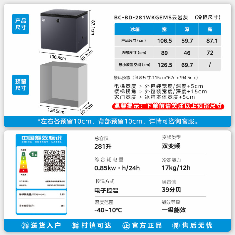 美的无霜王281风冷小型家用商用冰柜冷冻冷藏冷柜300升左右冰箱
