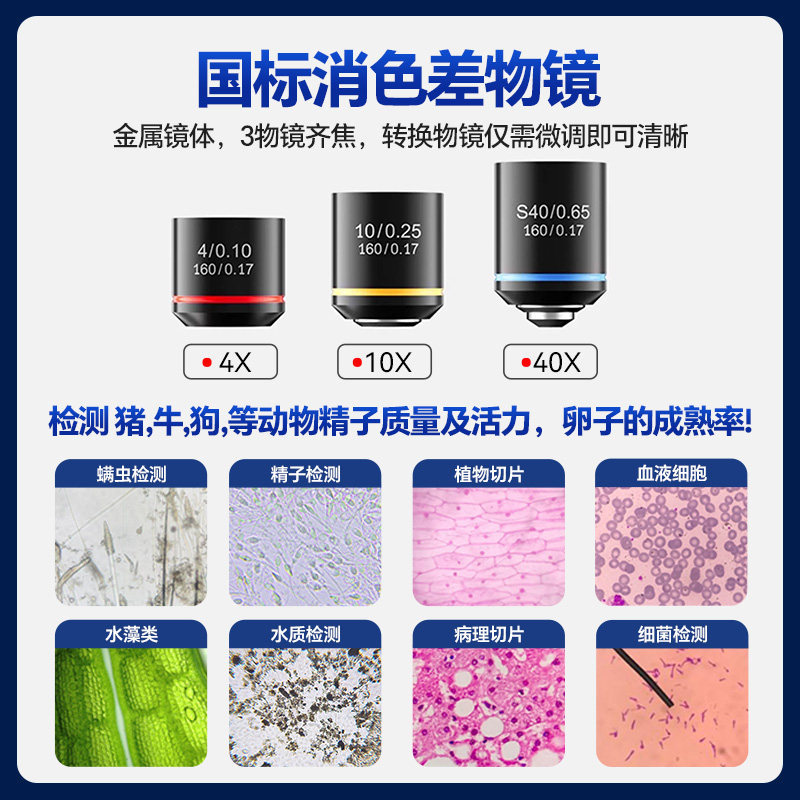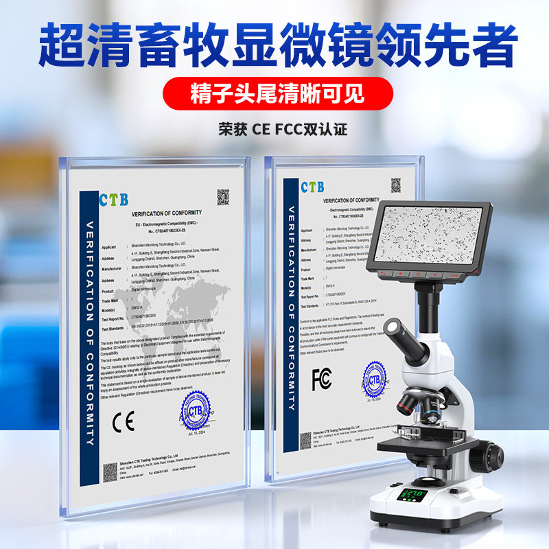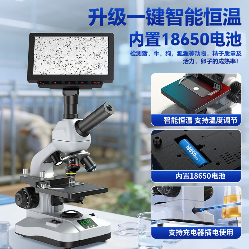 微距离畜牧养殖生物显微镜恒温加热人工授精看猪精子专用一体机带显示屏专业检测牛狗兔排卵实验蓄电可户外用