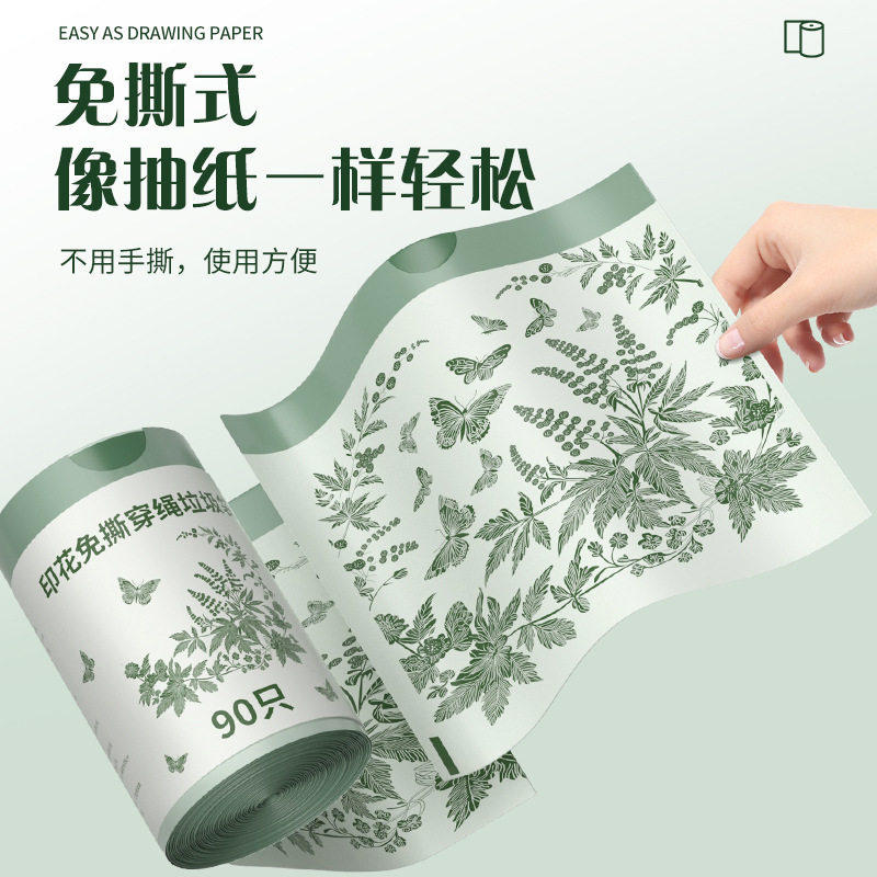 艾草免撕垃圾袋家用加厚手提式厨房抽绳加大清洁袋除味大卷塑料袋