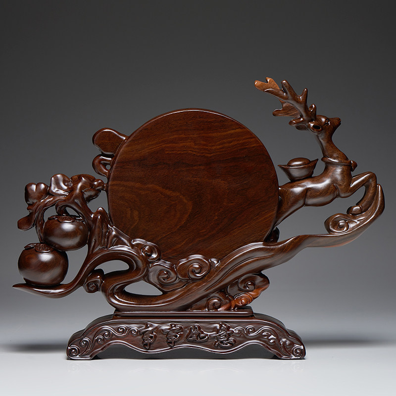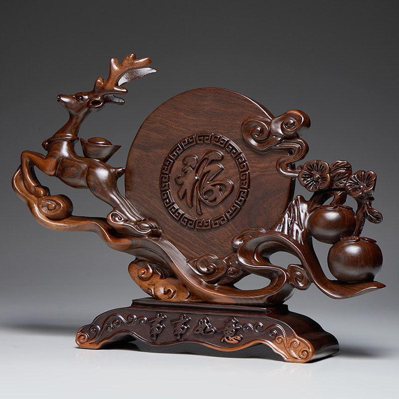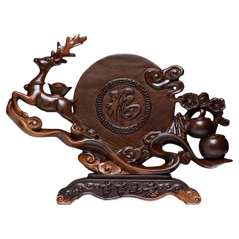 黑檀木雕事事如意柿子摆件办公室客厅装饰品实木鹿乔迁开业送礼品