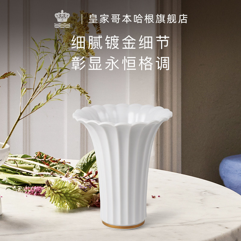 Royalcopenhagen皇家哥本哈根金色圣诞花瓶摆件桌面装饰插花客厅