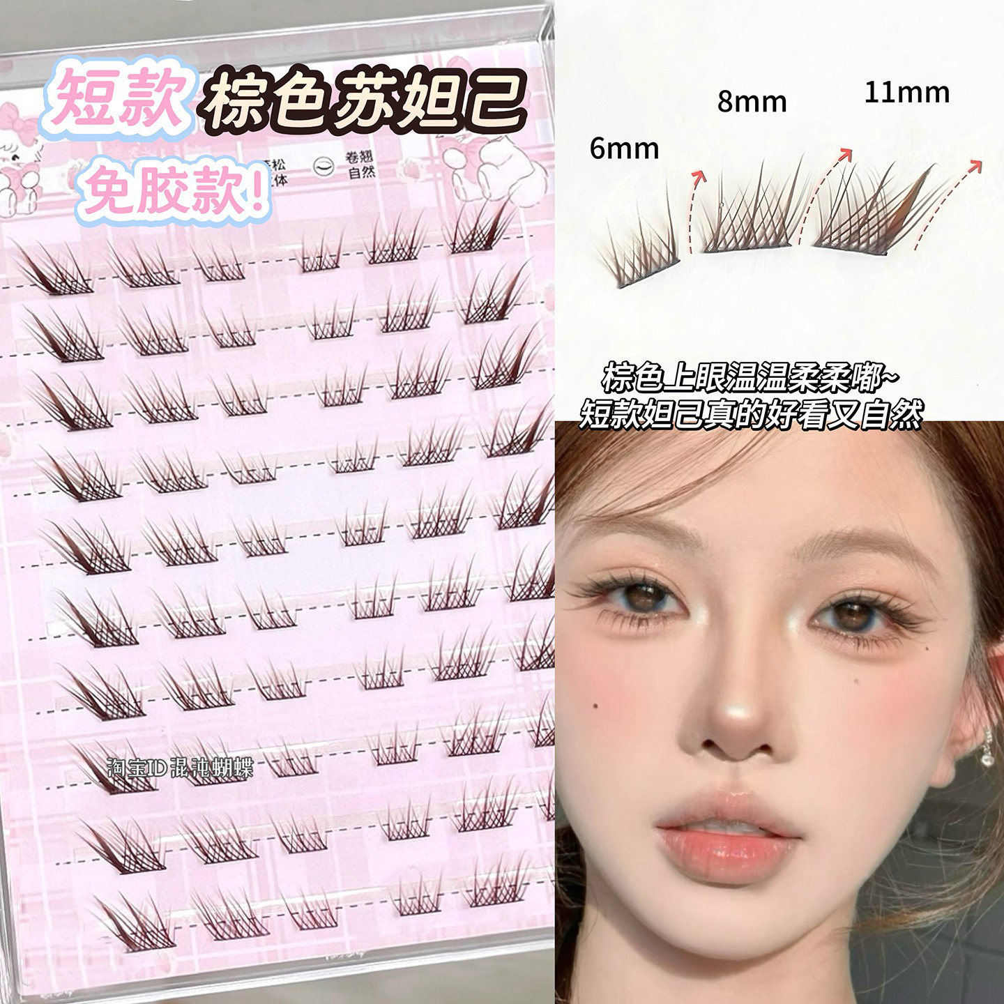 短款棕色苏妲己~狐系免胶自粘假睫毛女自然仿真新手斜飞款焦糖色
