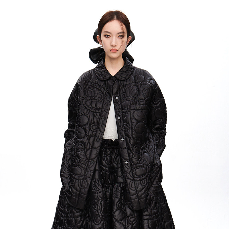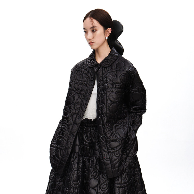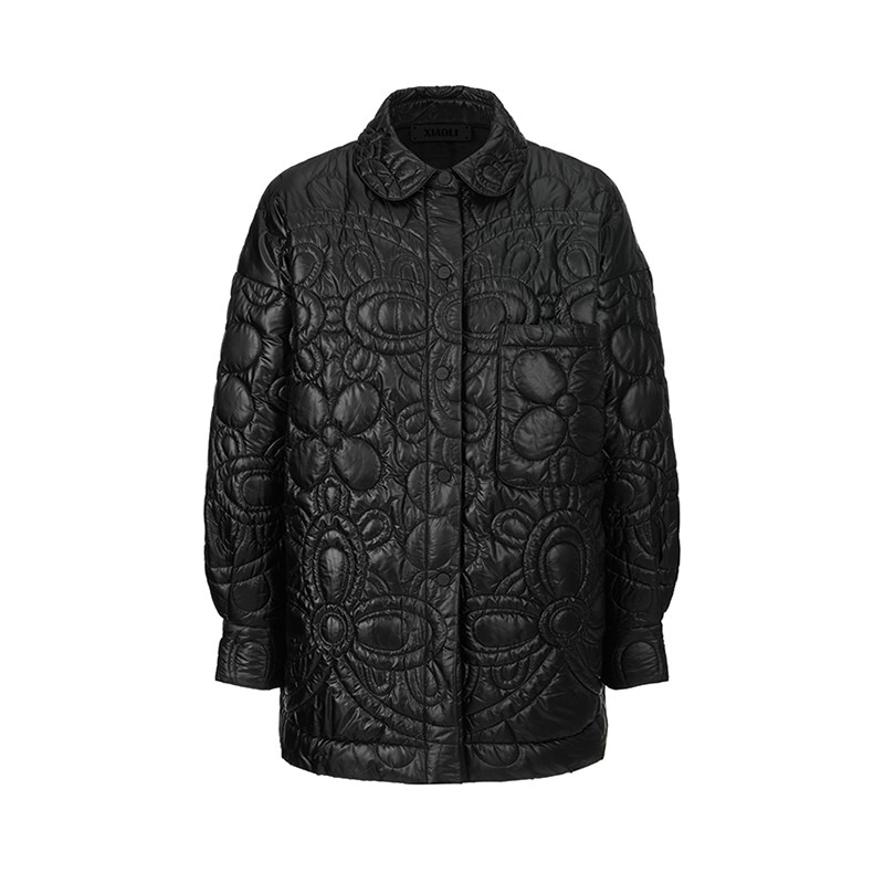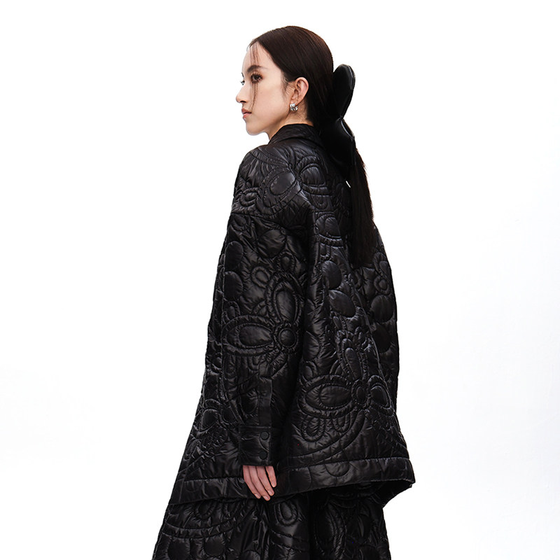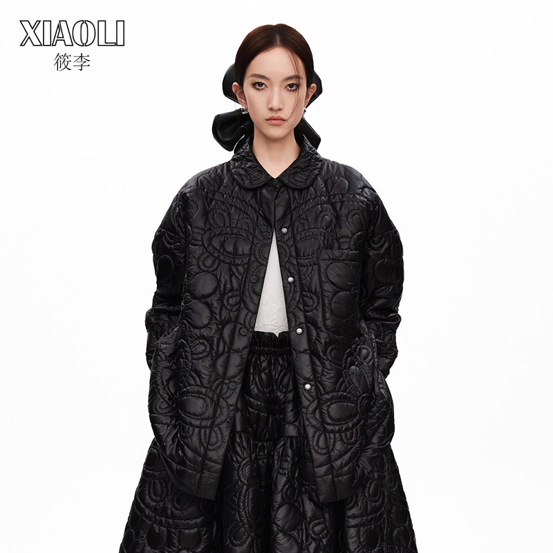 【设计师品牌XIAOLI筱李】蕾丝图案压花绗棉外套廓形黑色