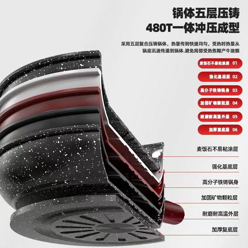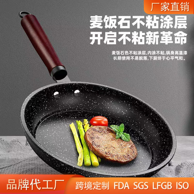 麦饭石平底锅不粘锅家用少油烟煎蛋小锅牛排煎锅不粘平底电磁炉锅