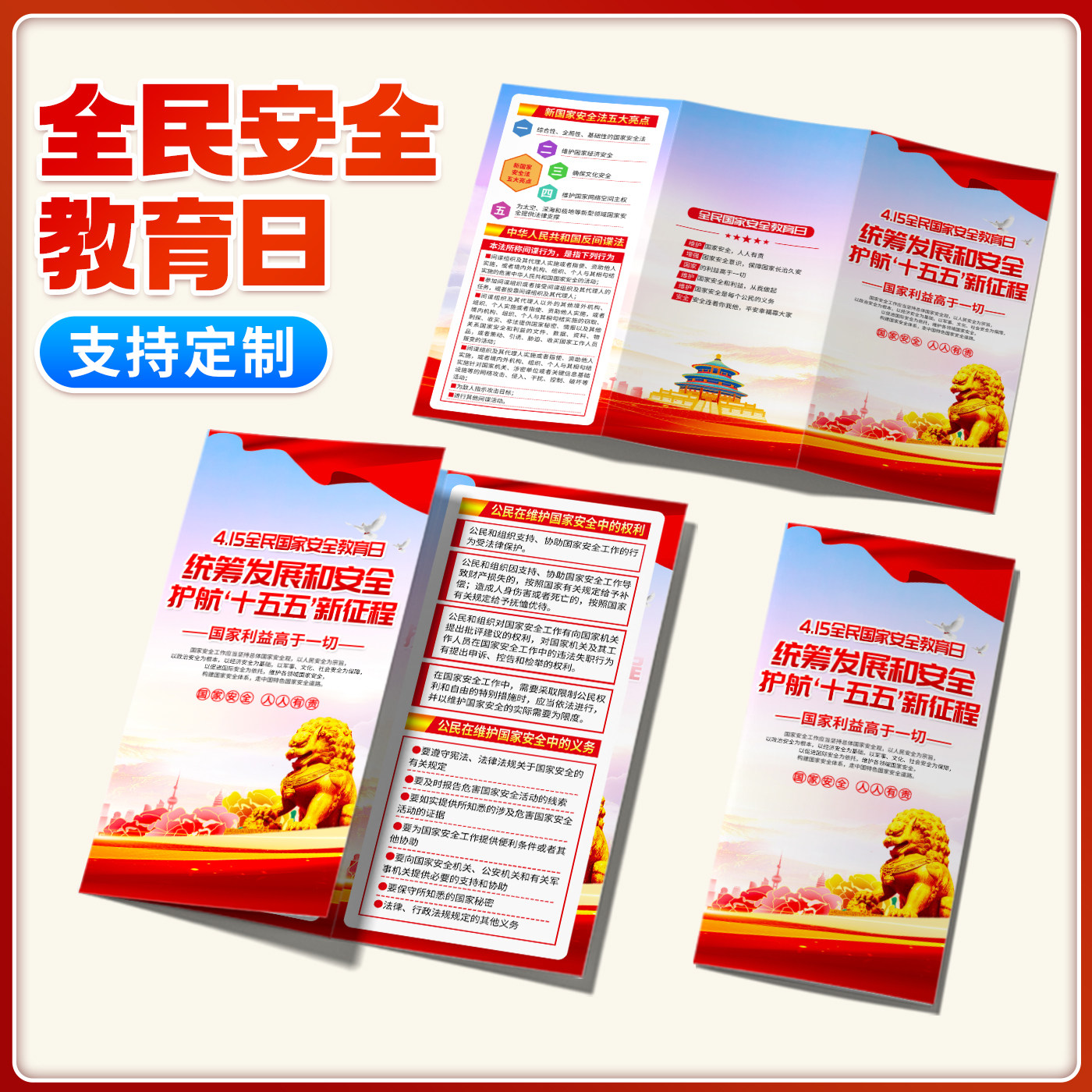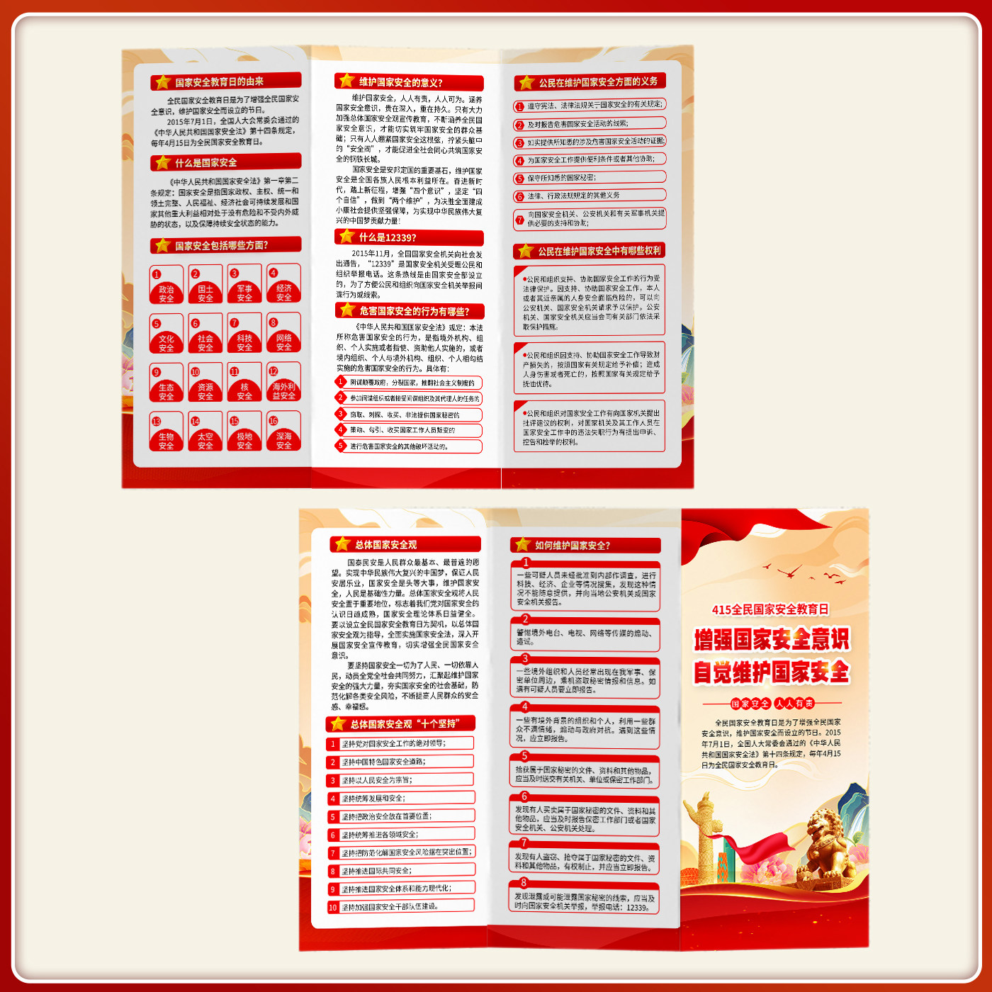 党政机关服务中心4.15全民国家安全教育日活动宣传单页三折页海报