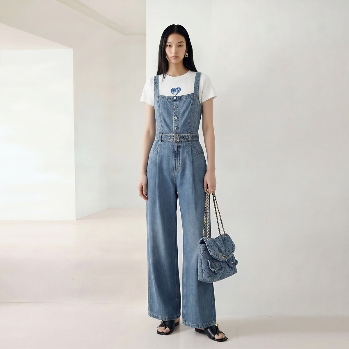 ONLY2026春季新款复古高腰背带连体裤直筒裤牛仔裤女|126264002