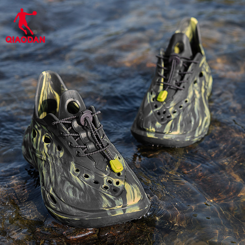 乔丹洞洞鞋2025夏季透气沙滩凉鞋耐磨黑色户外徒步登山溯溪鞋男鞋