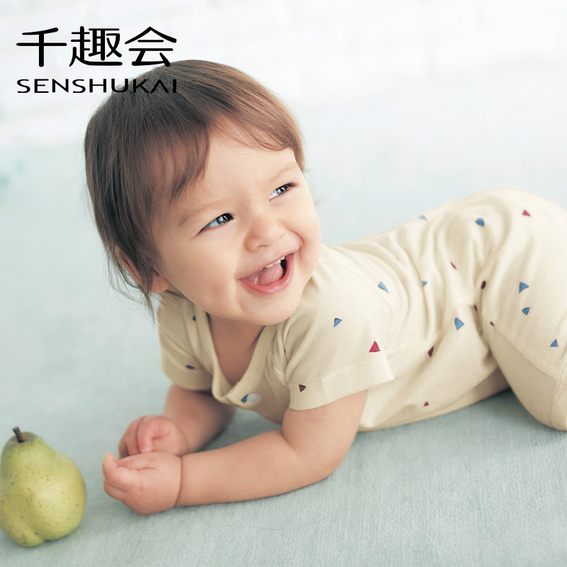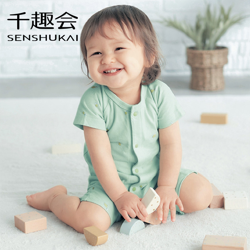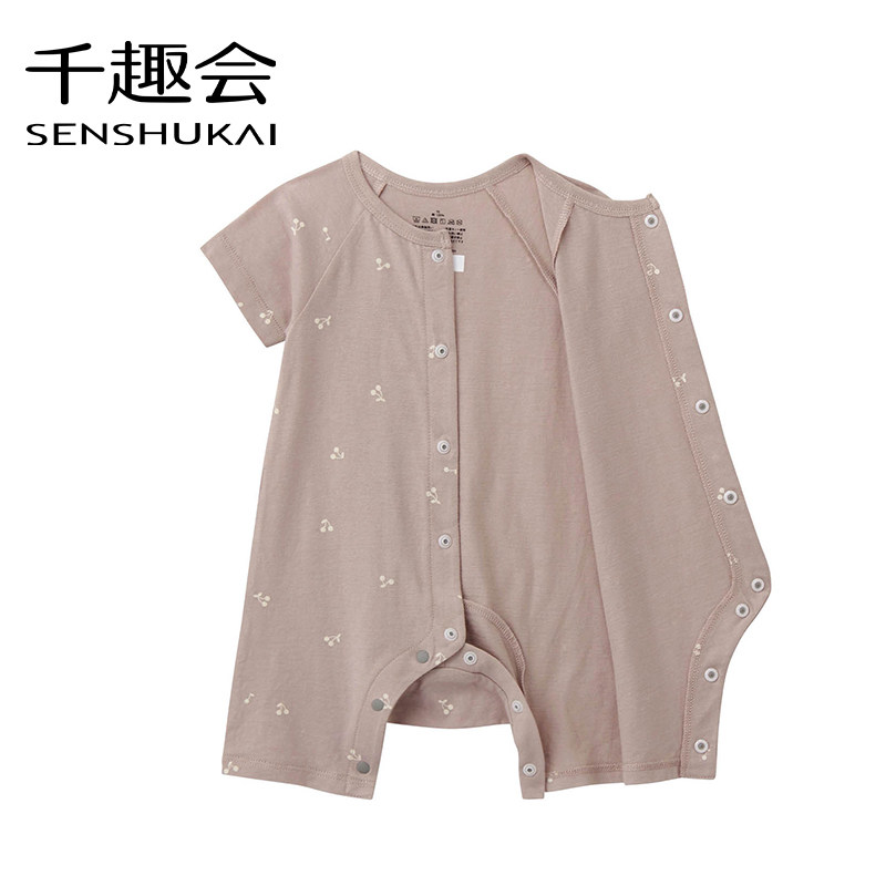 千趣会童装夏款宝宝婴儿童趣满印轻薄全棉短袖连体衣爬服