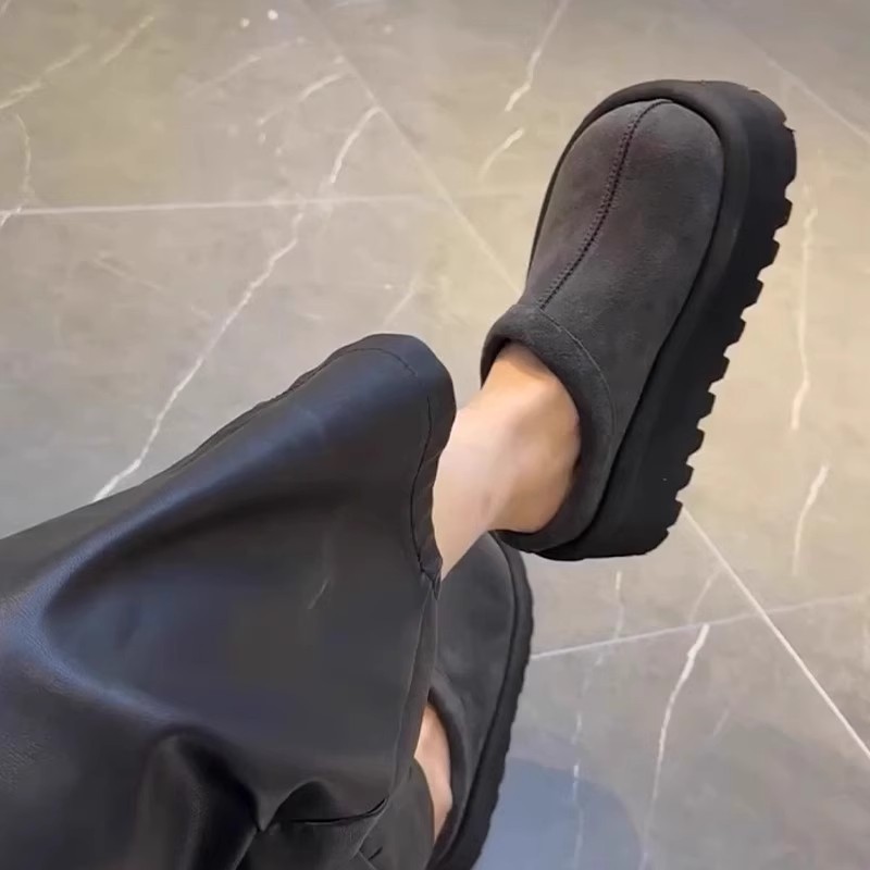 周雨彤同款厚底勃肯鞋女2025新款冬季加绒半拖鞋外穿增高穆勒鞋子
