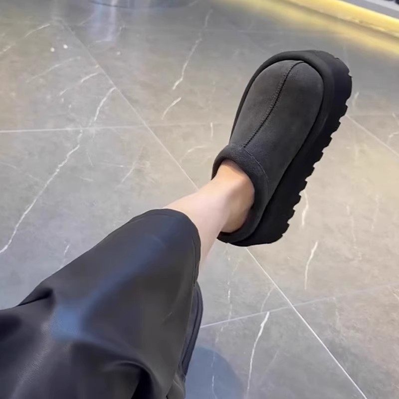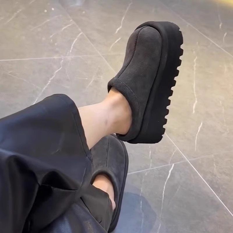 厚底勃肯鞋女2025新款冬季女鞋加绒半拖一脚蹬穆勒鞋子增高博肯鞋