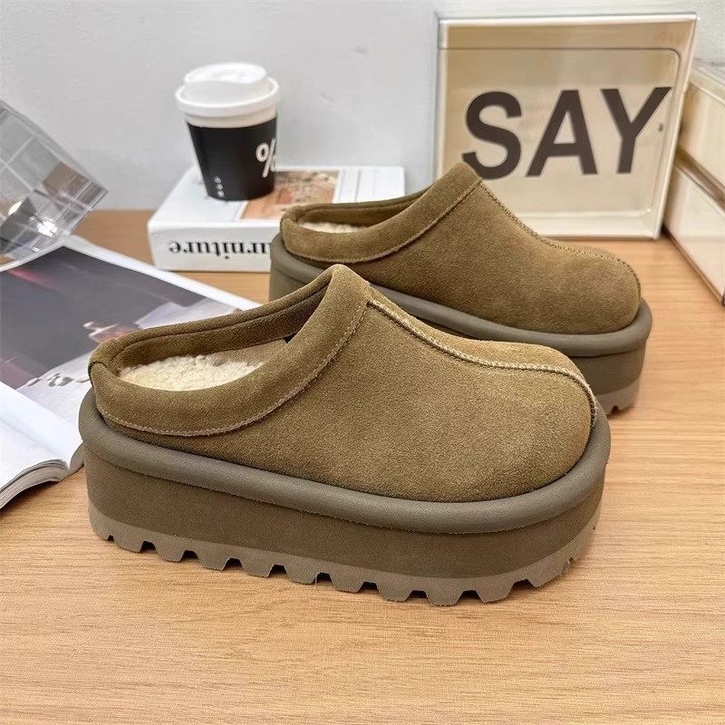 叁叔家~内增高勃肯鞋女加绒秋冬保暖毛毛半拖外穿厚底博肯鞋
