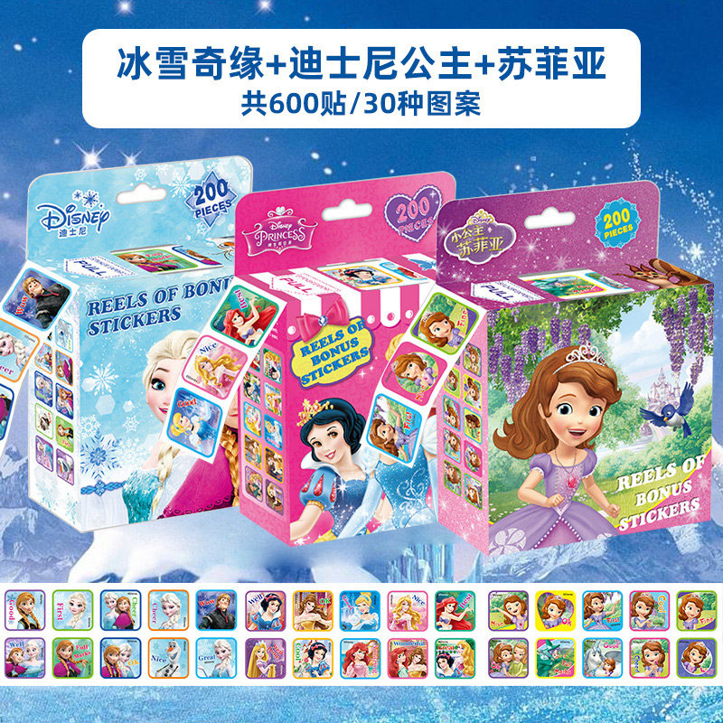 正版迪士尼卷卷贴纸可爱卡通女孩生镭射装饰迷你小图案贴贴画帖子冰雪奇缘爱莎艾莎白雪公主苏菲亚儿童幼儿园