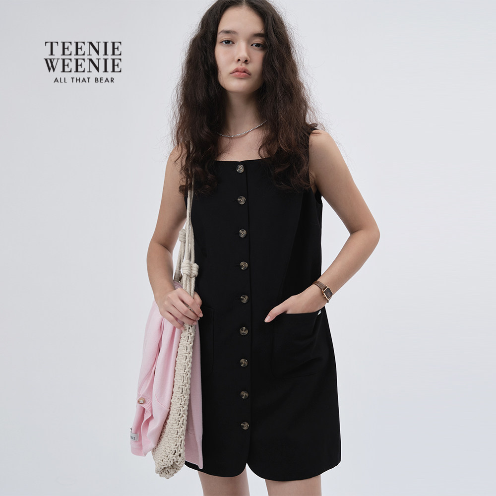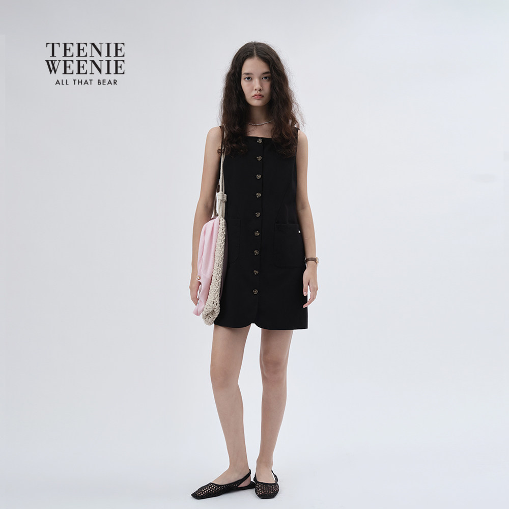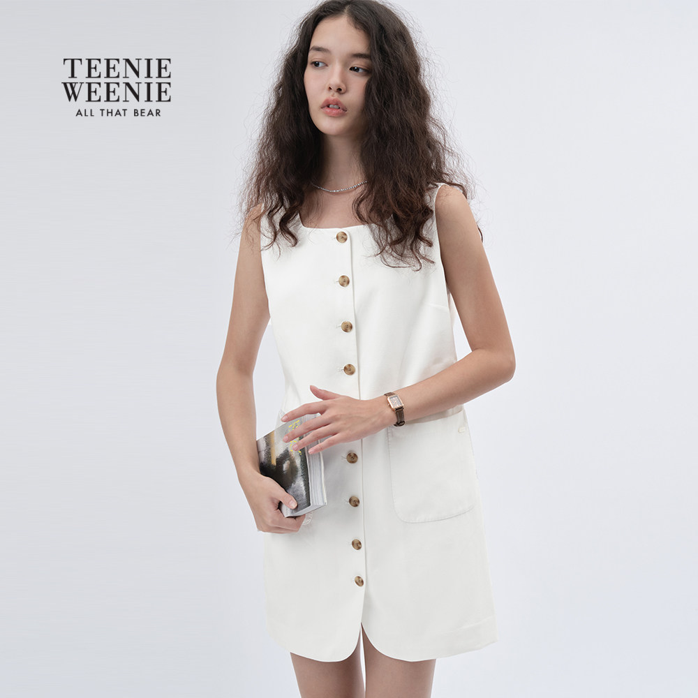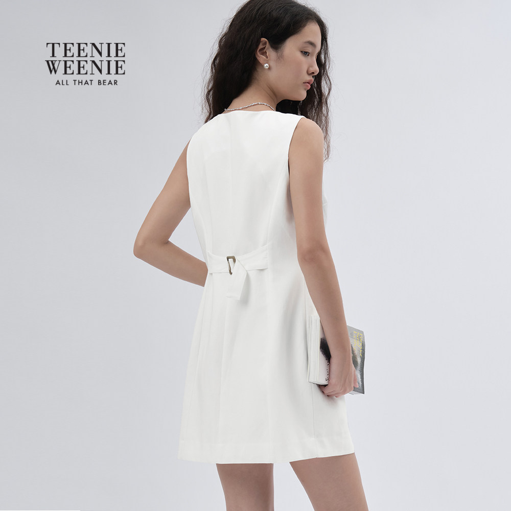 【含亚麻】TeenieWeenie小熊女装2025秋季新款法式气质白色连衣裙