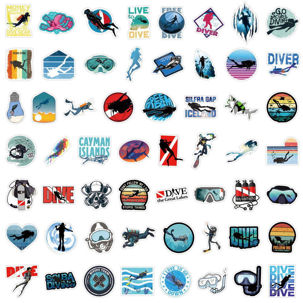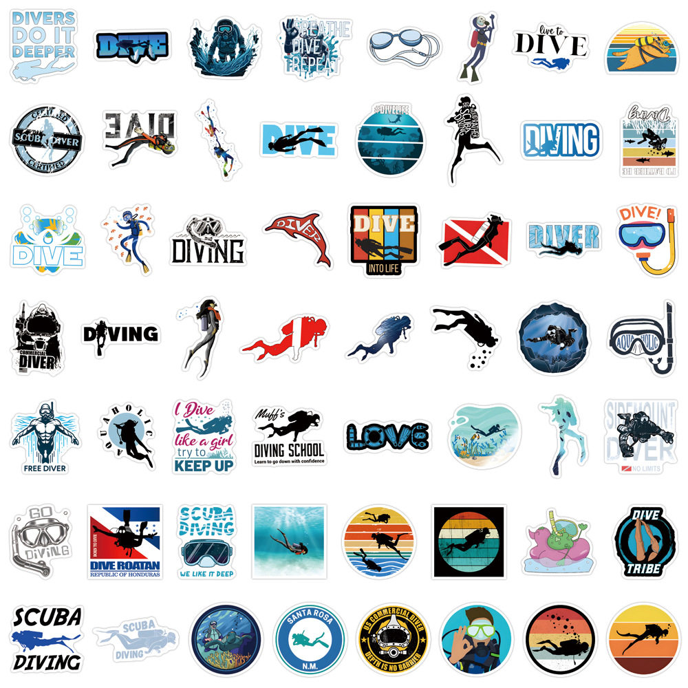 110张新款个性潜水Diving个性涂鸦贴纸笔记本电脑平板吉他主机箱手机壳水杯手账文具电动车头盔装饰贴画防水