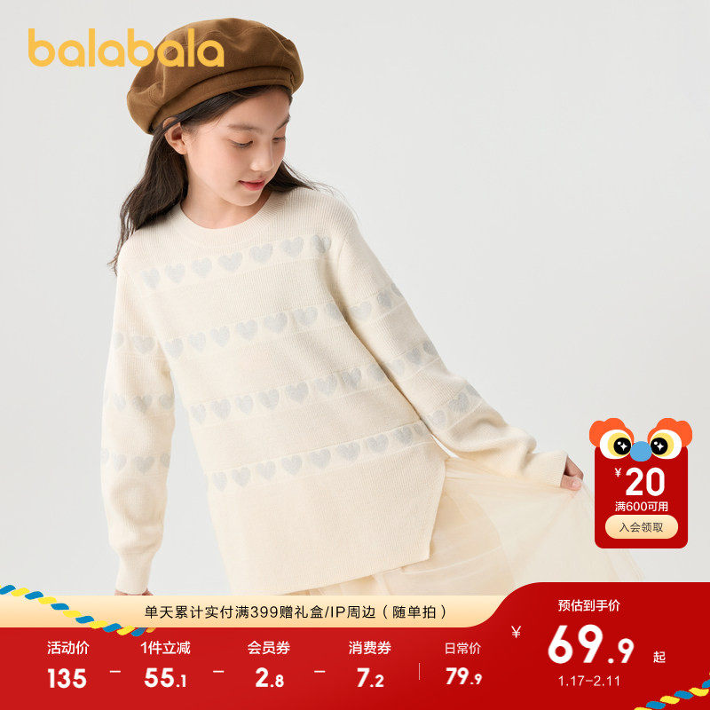 巴拉巴拉balaOne童装女公主裙2025秋冬新款儿童连衣裙针织网纱裙