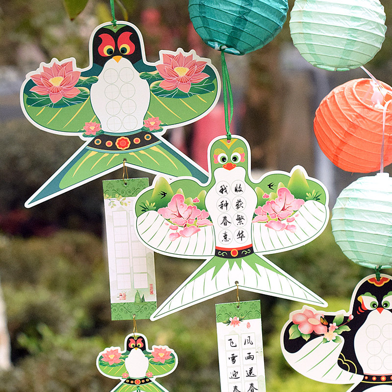 60张鸢飞春韵风筝系列硬笔书法挂卡送学生田字格手写心愿祝福卡