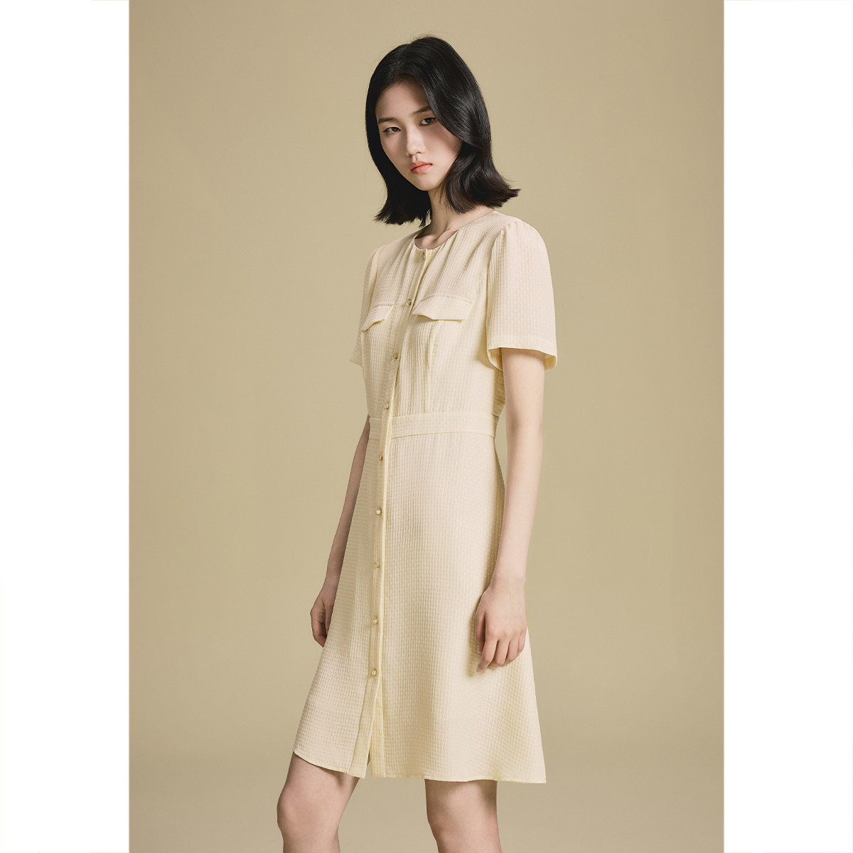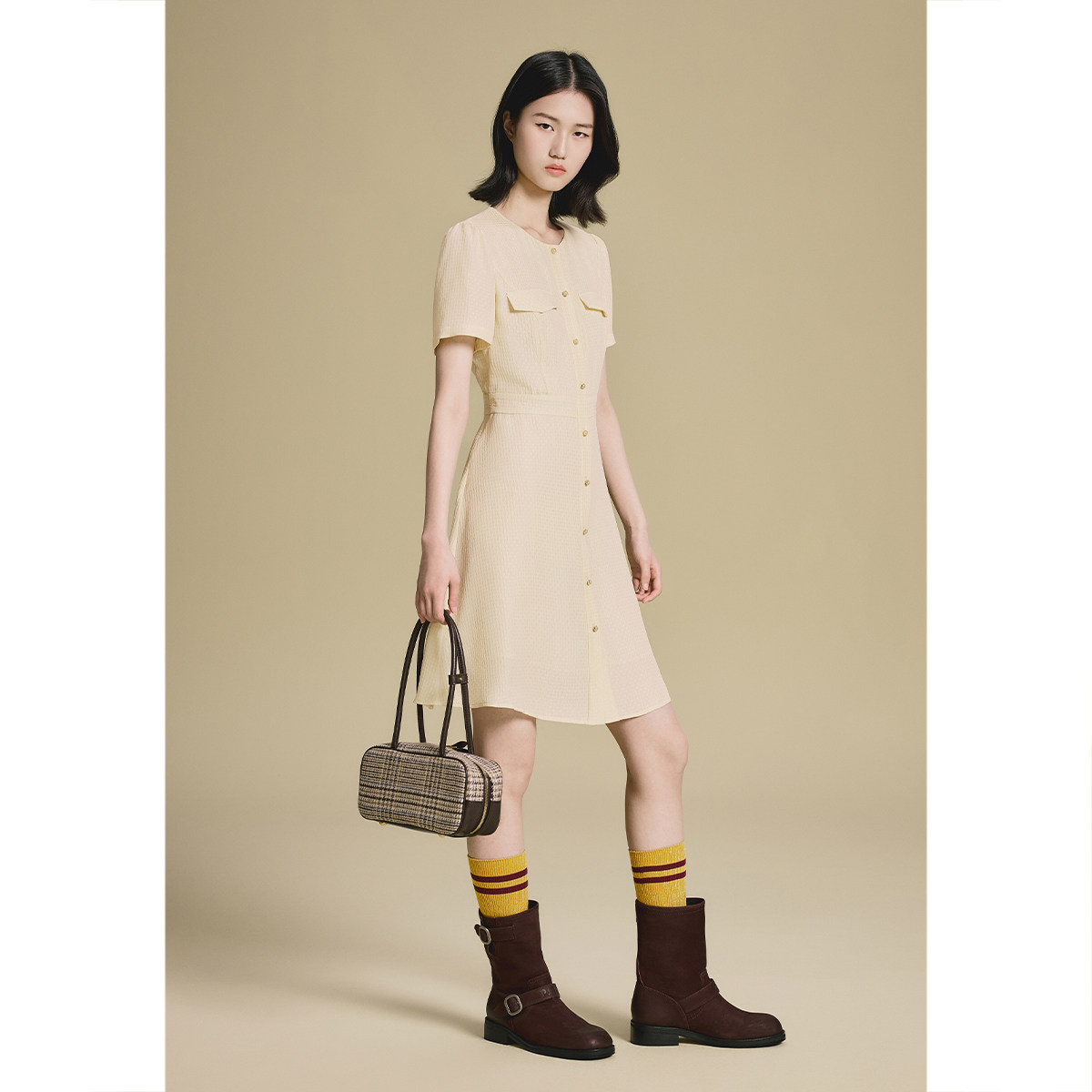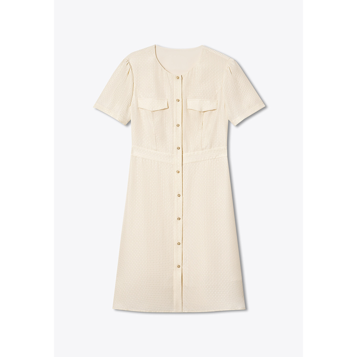【真丝】诗篇专选十字纹桑波缎提花小香风真丝连衣裙2025夏款