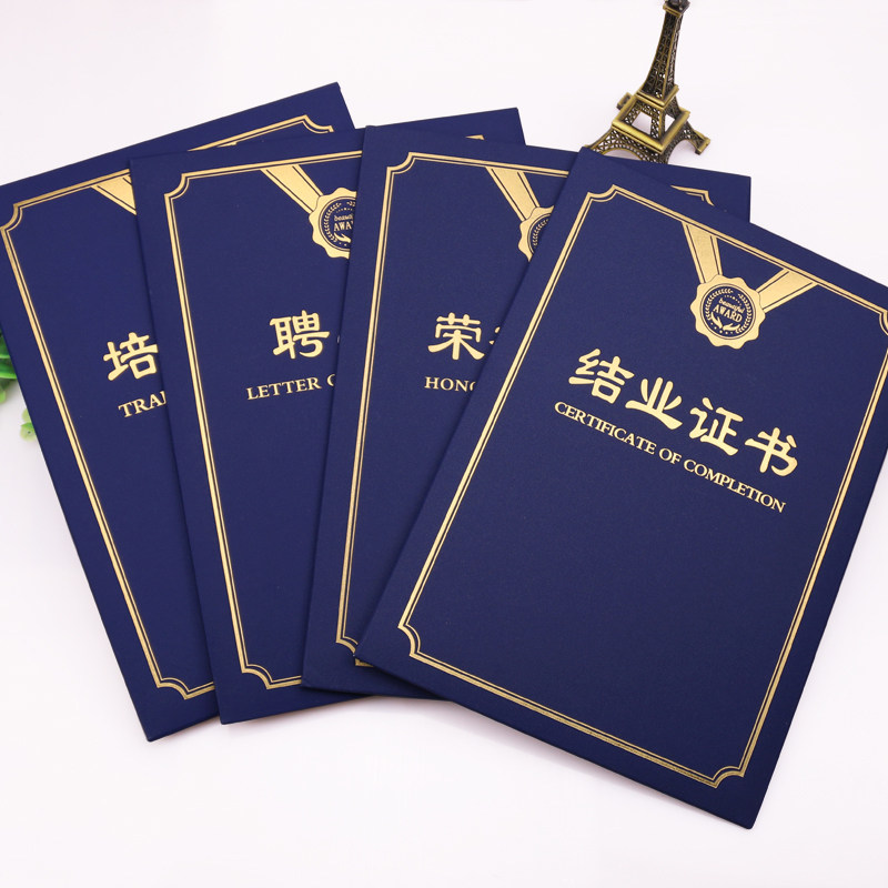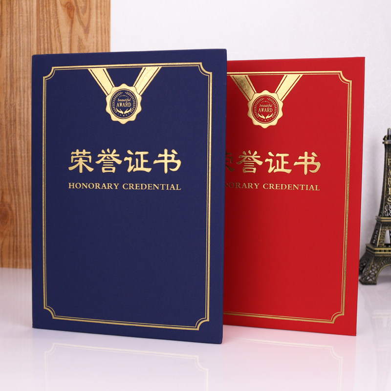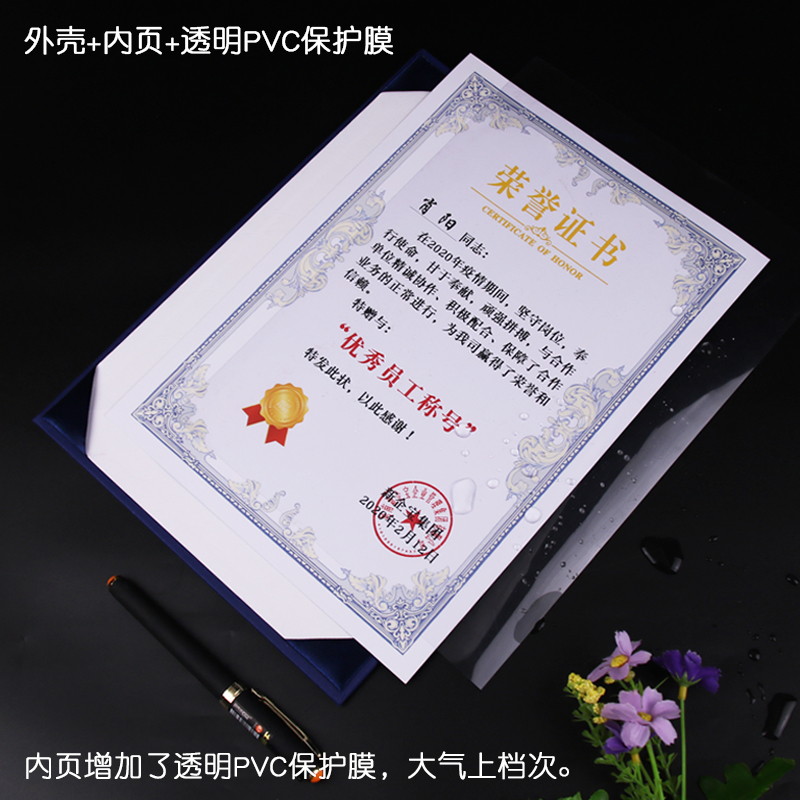 A4竖版单片式荣誉证书结业培训聘书企业学校颁奖框奖状外壳封套面皮内芯纸张定制作打印优秀员工表彰年会通用