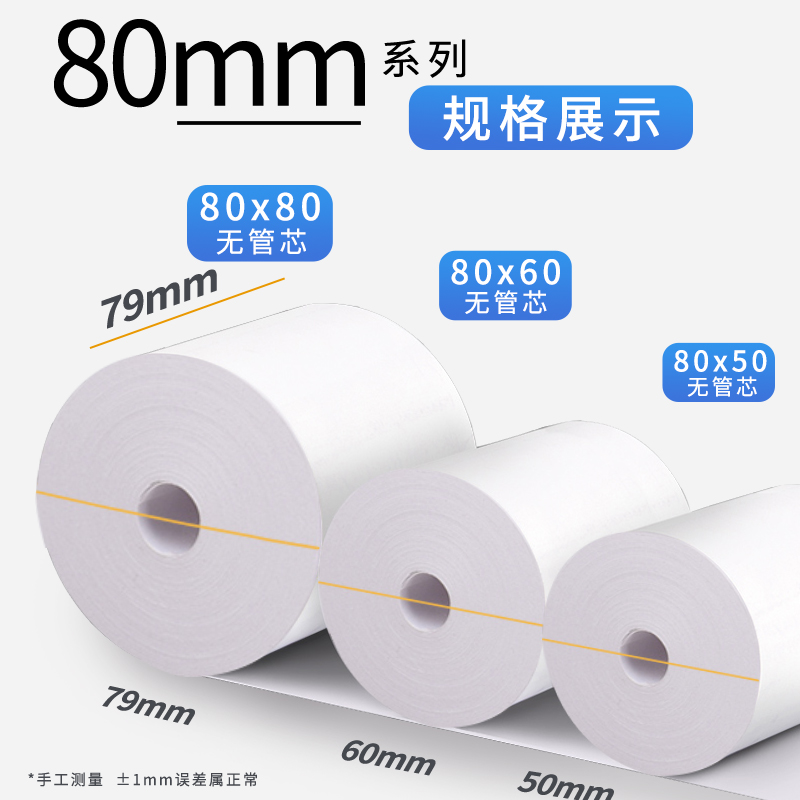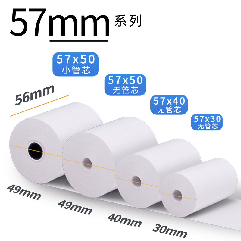 超薄款热敏收银纸57x50x30打印机纸美团外卖80x80x60x50超市后厨房餐厅卷纸po通用小票纸无管芯小卷纸业高级
