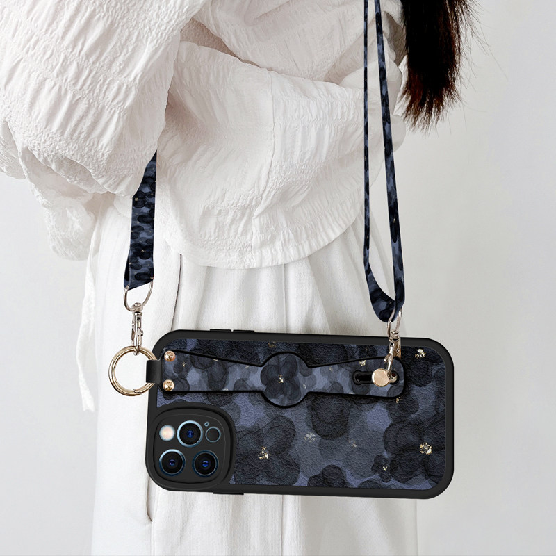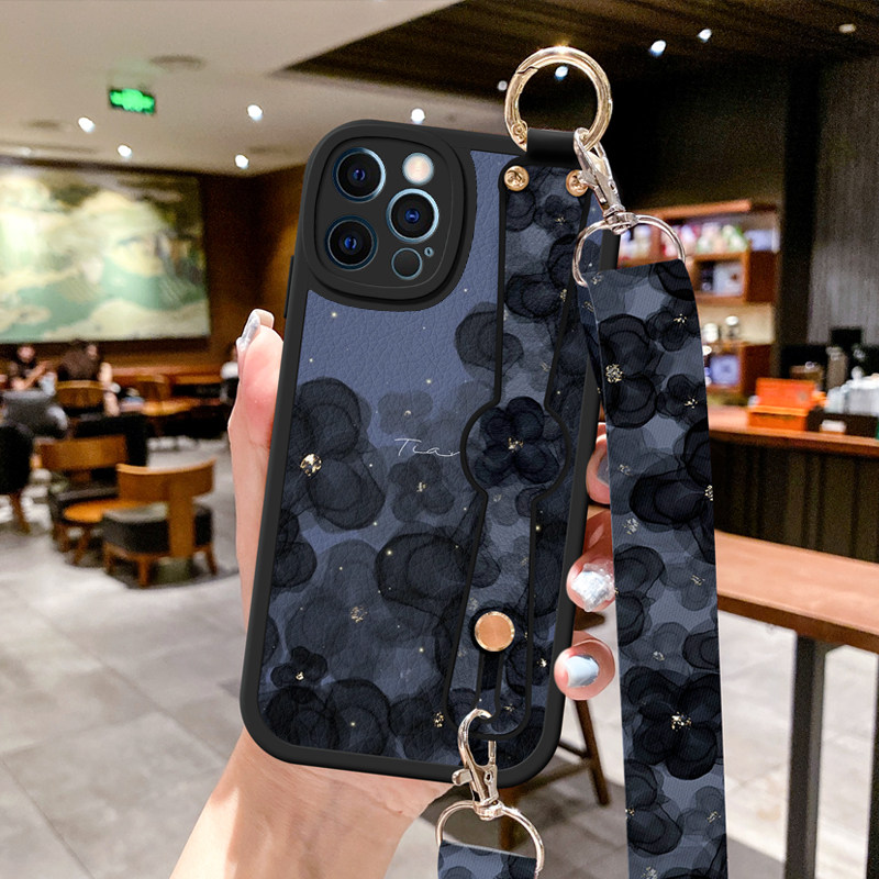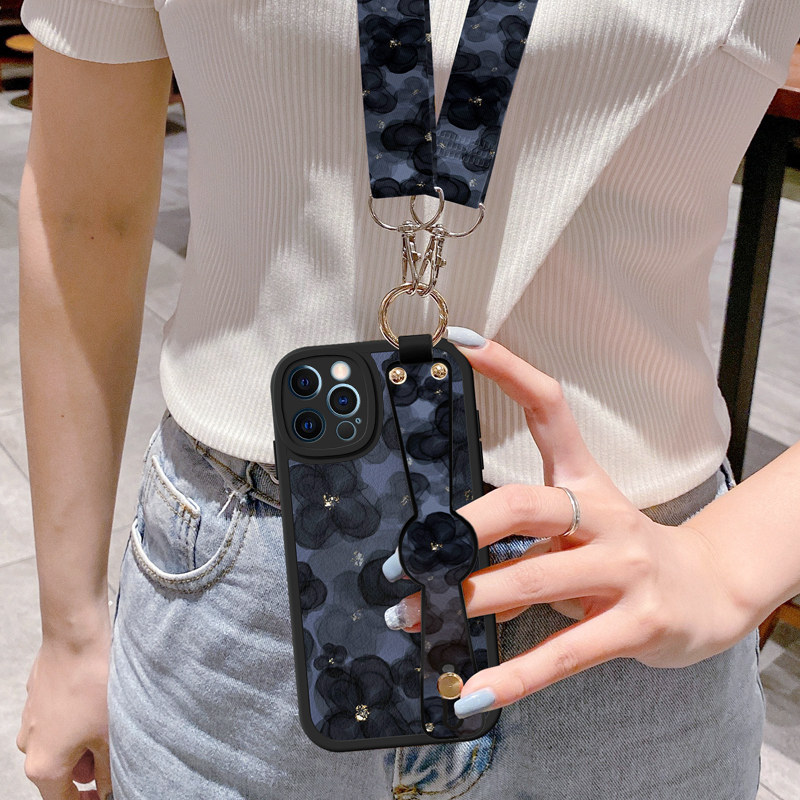 山茶花适用iPhone15苹果13手机壳16新款11女14带挂绳17斜挎背带promax防摔8plus腕带Pro硅胶12斜跨XR保护套XS