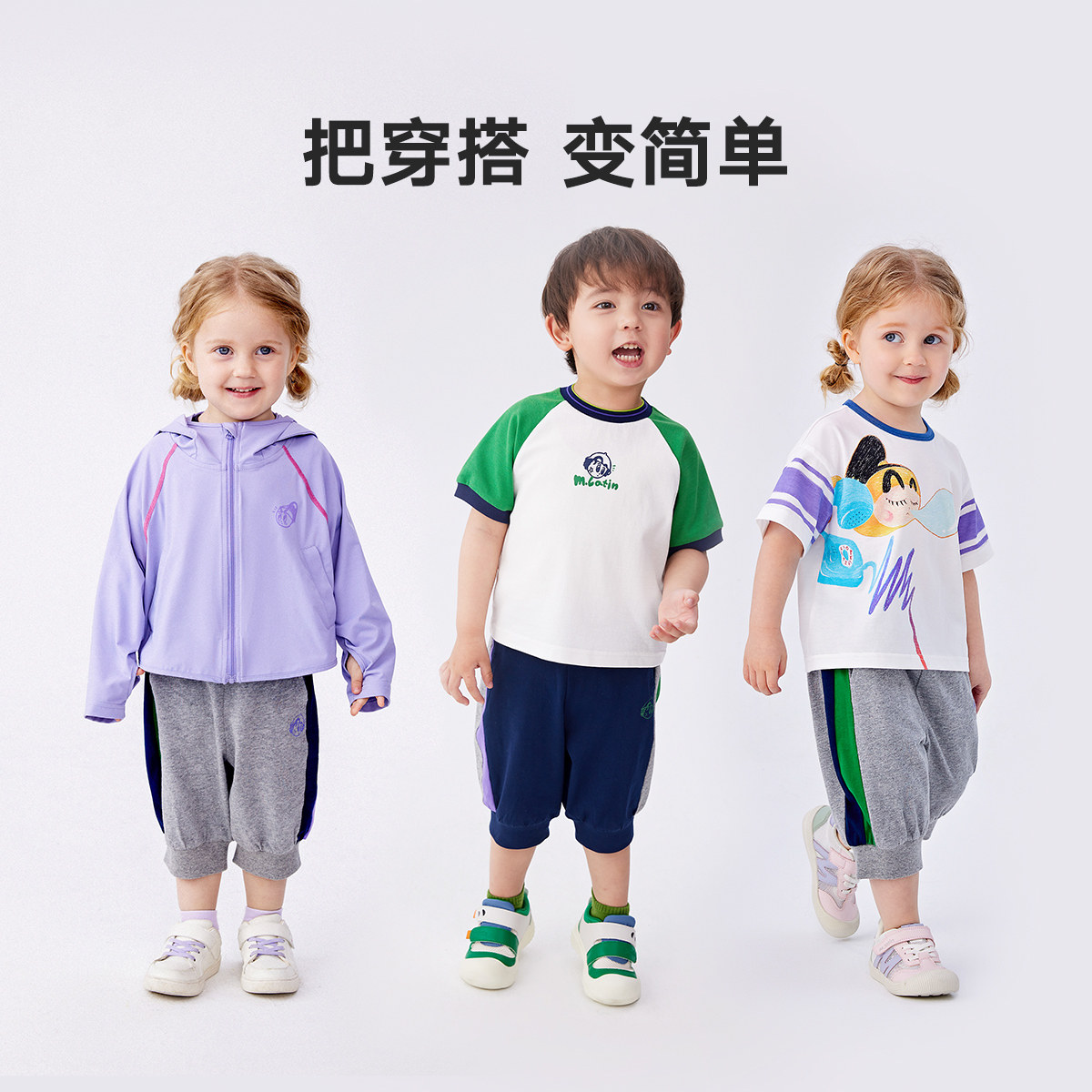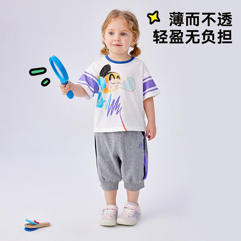 马拉丁童装儿童裤子夏装新款男女童小童侧缝多色拼接针织中裤
