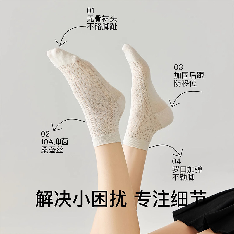 桑蚕丝袜子女2026新款爆款夏季薄款网眼透气短袜春秋芭蕾风中筒袜