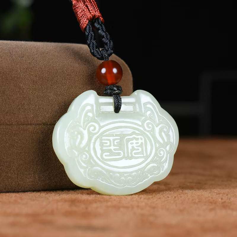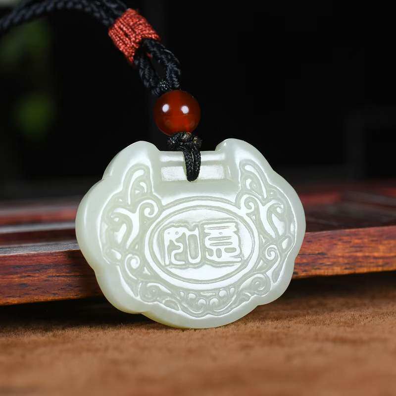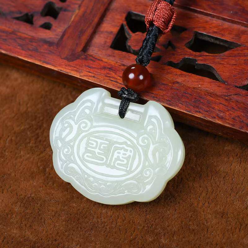 新疆和田玉平安如意锁吊坠男女宝宝儿童长命锁玉佩玉坠项链送礼物