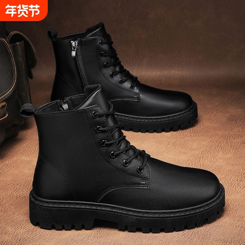MRA德比鞋男款圆头大头鞋黑色工装鞋通勤马丁靴厚底增高休闲皮鞋