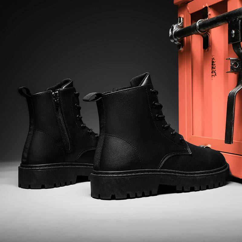 厨师男鞋秋季防滑防水厨房高帮皮靴黑色休闲皮鞋冬季运动马丁潮鞋