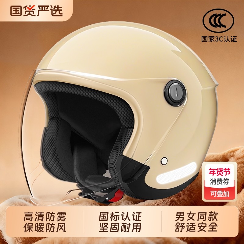 3c认证头盔电动摩托车男女士秋冬天保暖半盔电瓶车安全帽四季通用