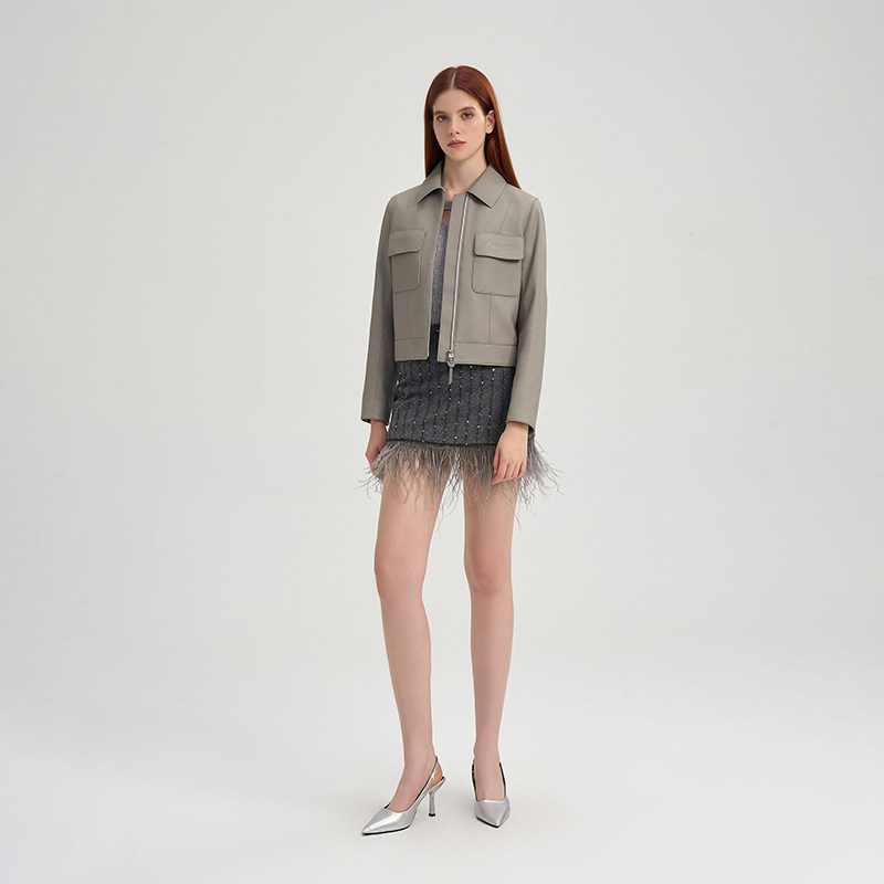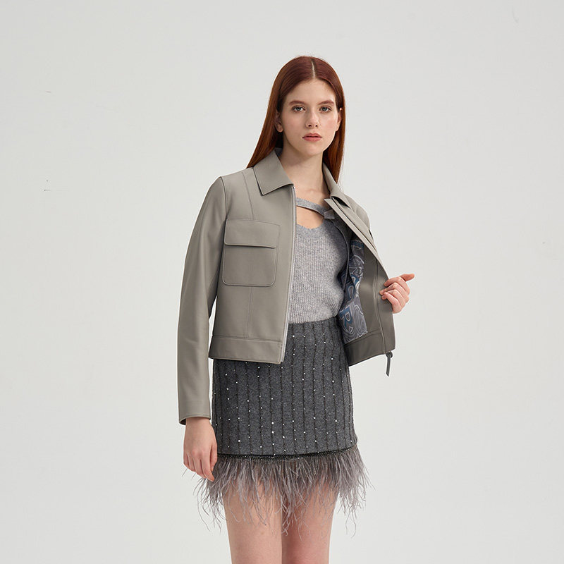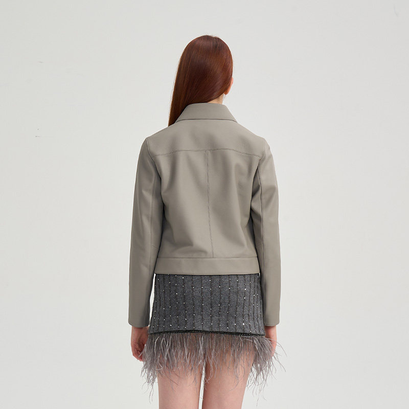 情侣款RARE威雅女装2025秋季新款羊皮夹克短款灰色真皮皮衣女