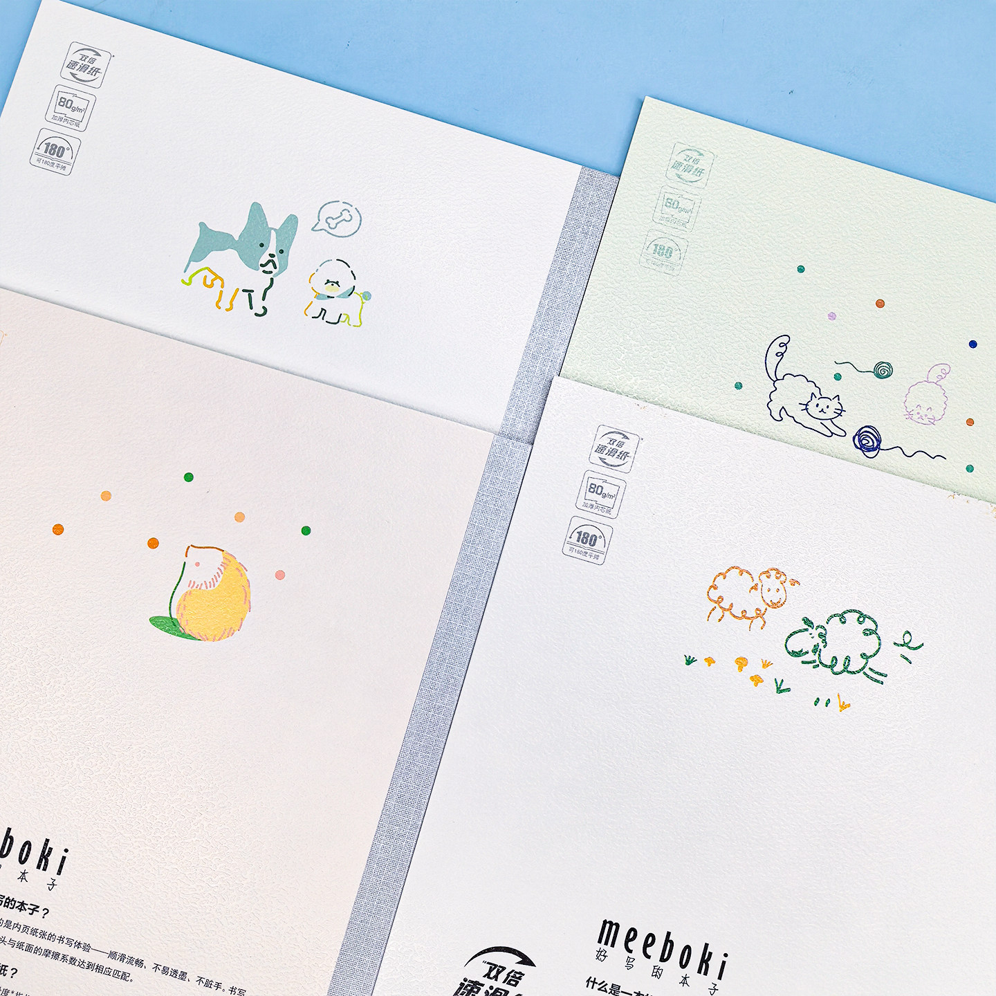 晨光 meeboki-萌动线条 B5无线装订本 镭射勾边封面卡通动物速滑纸横线内芯40页学生笔记本纸张本册本子文具