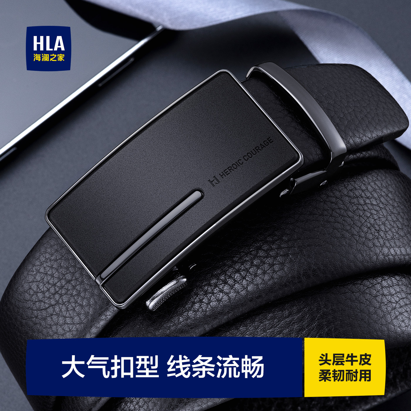 海澜之家腰带男士真皮皮带商务休闲自动扣潮年轻人头层牛皮裤带