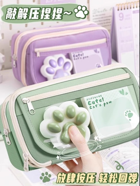 大容量笔袋女生2025新款女孩款文具盒高颜值铅笔盒小学生女生款儿童可爱猫爪捏捏乐文具袋铅笔袋男孩款可放