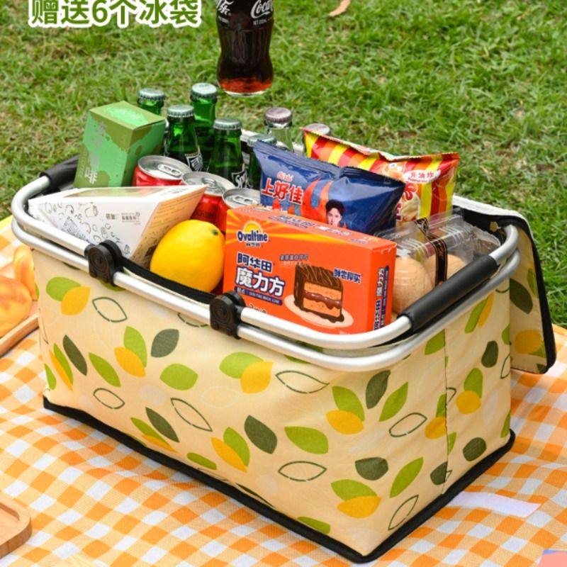 野餐篮可折叠户外保温露营提篮手提野餐用品必备篮子外卖冷藏冷冻