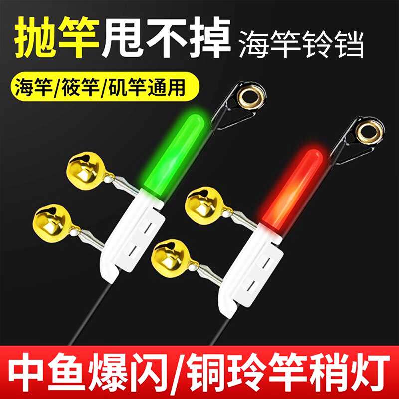 夜钓电子竿稍灯防甩大铜铃铛钓鱼感应灯鱼竿海杆报警器夜光杆稍灯