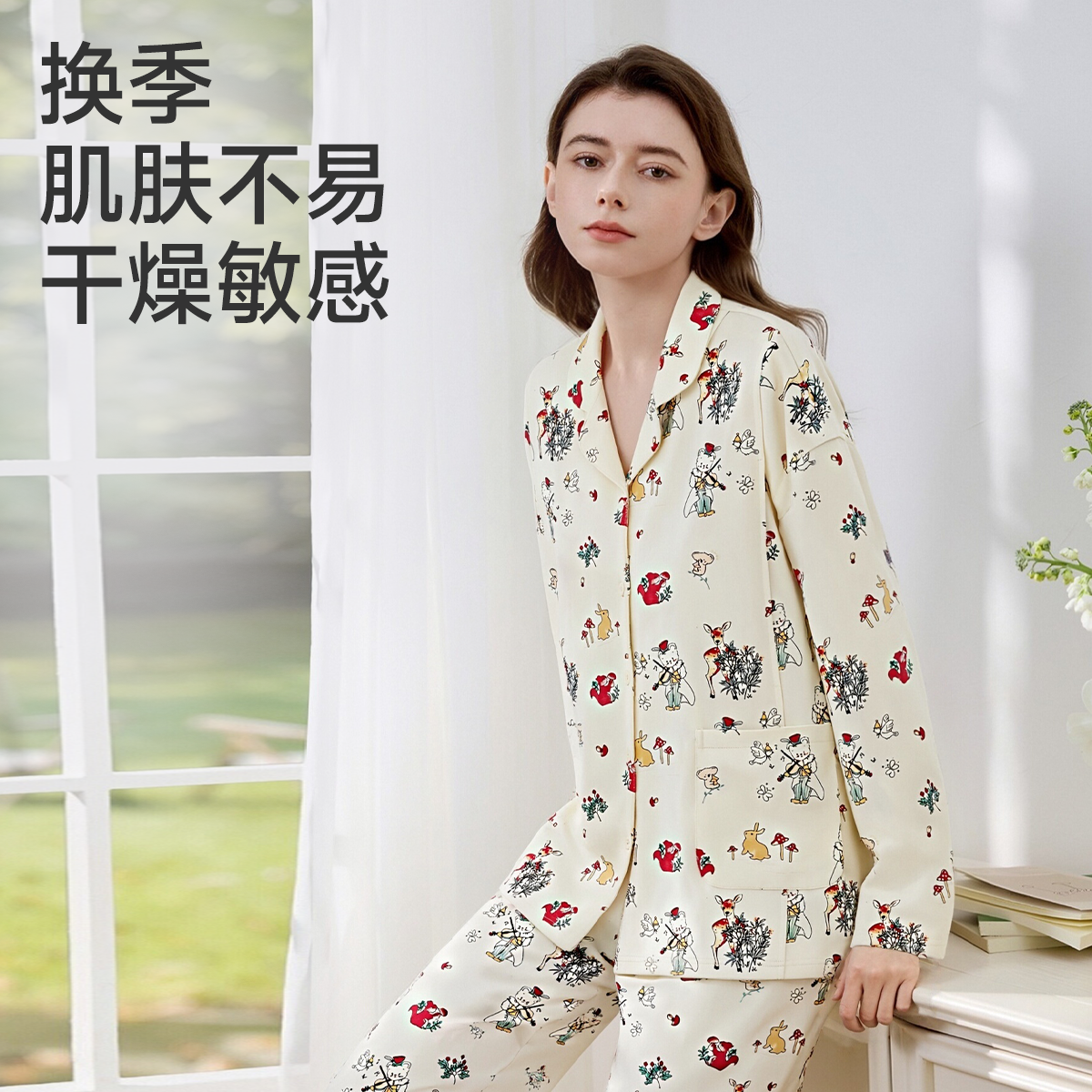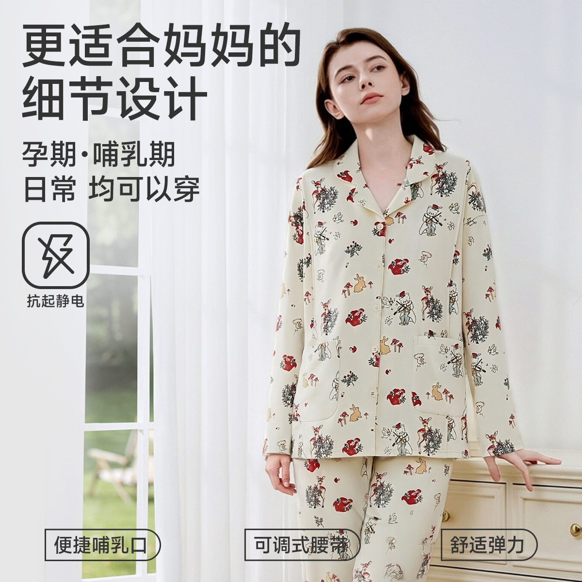 cutelife【轻羽】月子服女士长袖家居服孕妇竹棉哺乳睡衣秋冬套装