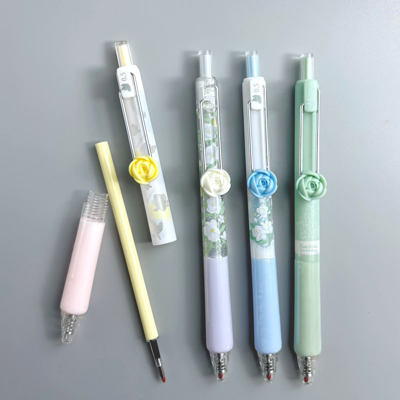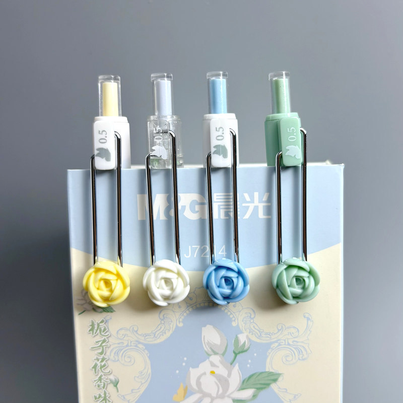 晨光栀子花开按动中性笔香味少女心可爱速干水笔高颜值ins小清新学生按压式签字笔考试J7214速干黑色0.5