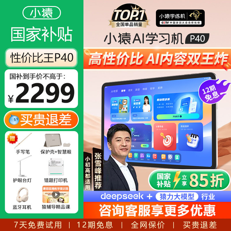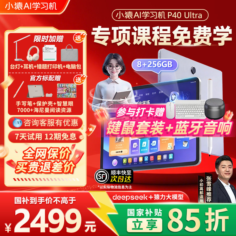 【限量抢88VIP券】小猿学习机P40Ultra猿辅导25年T4AI学习机智能平板电脑小学初高中大屏护眼英语学练机