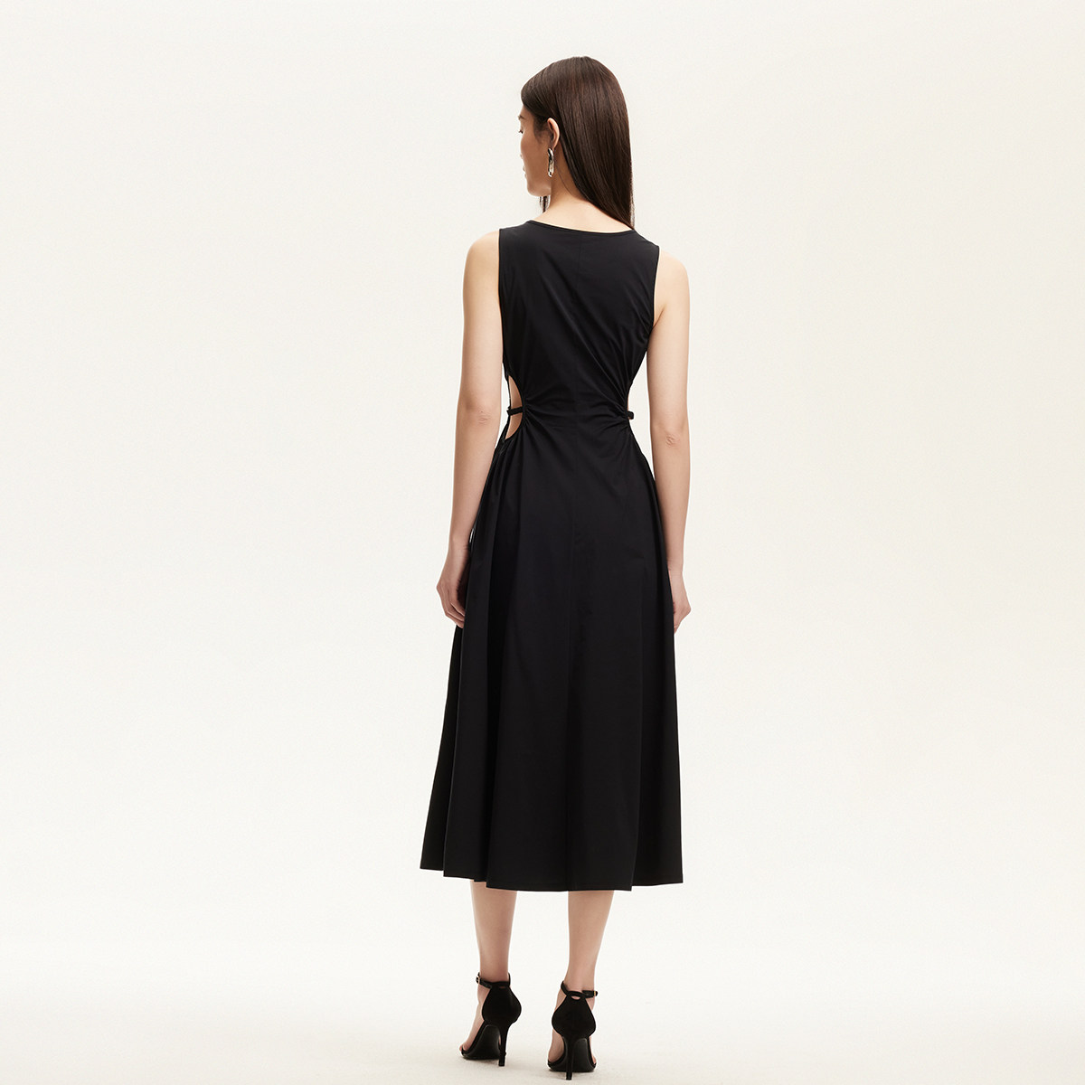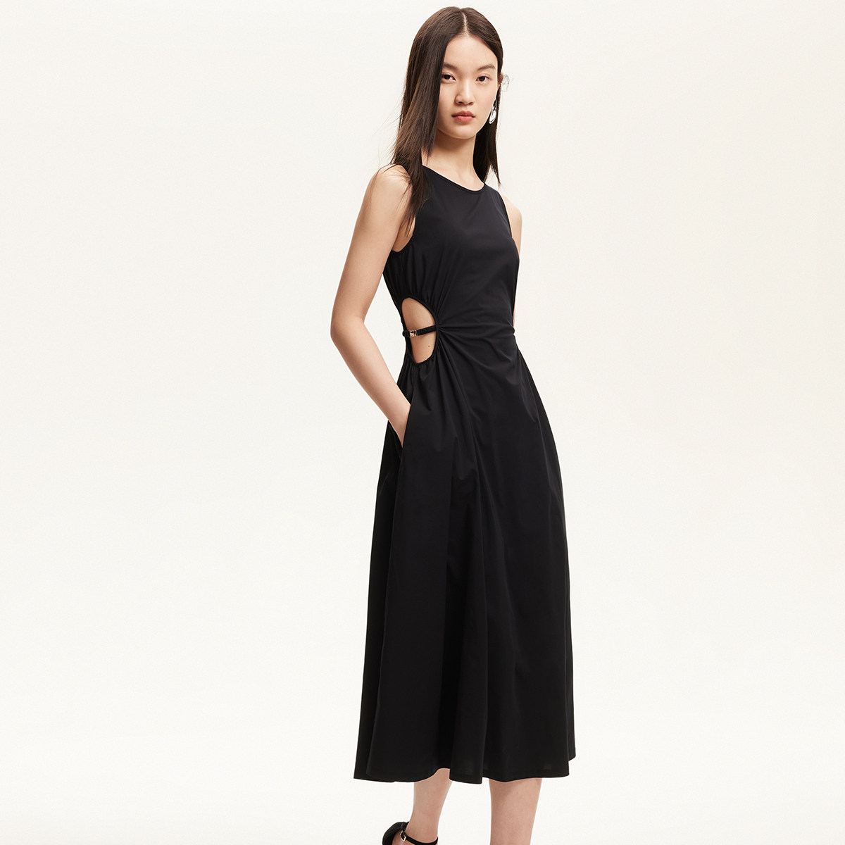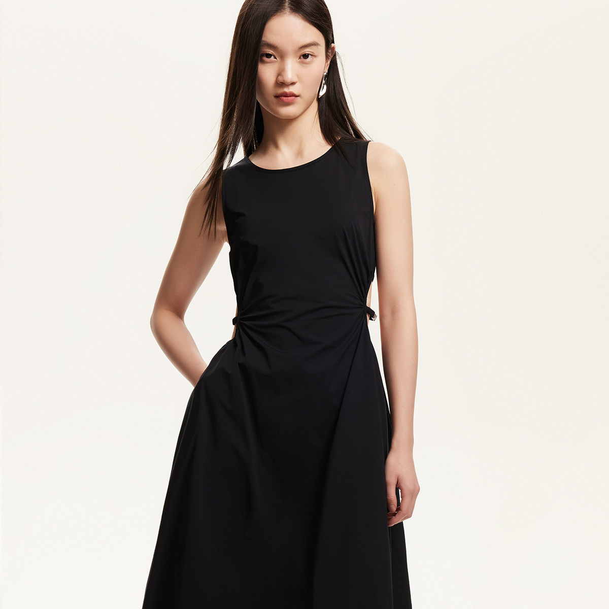 Vero Moda奥莱连衣裙2025夏季新款腰部镂空收腰A字小黑裙子时尚