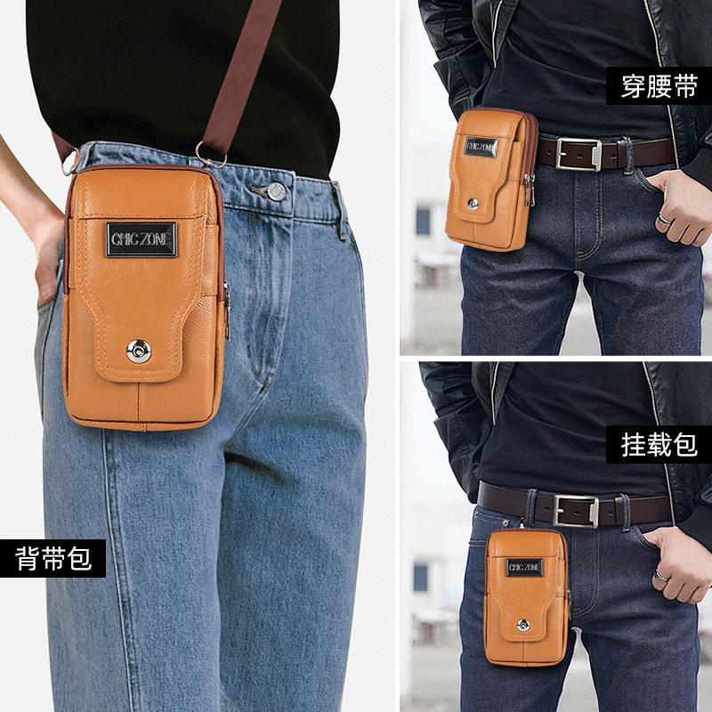 新款真皮手机包男士多功能穿皮带腰包户外休闲迷你斜挎挂包