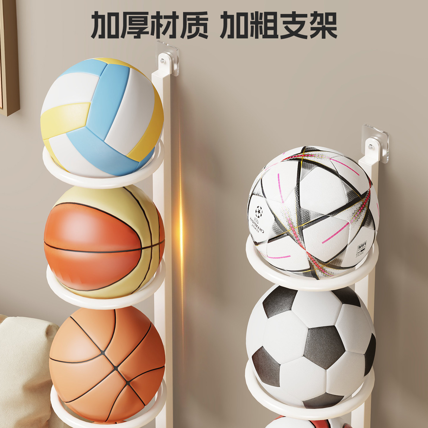 篮球收纳架家用免打孔上墙足球排球羽毛球摆放置物架球类收纳神器